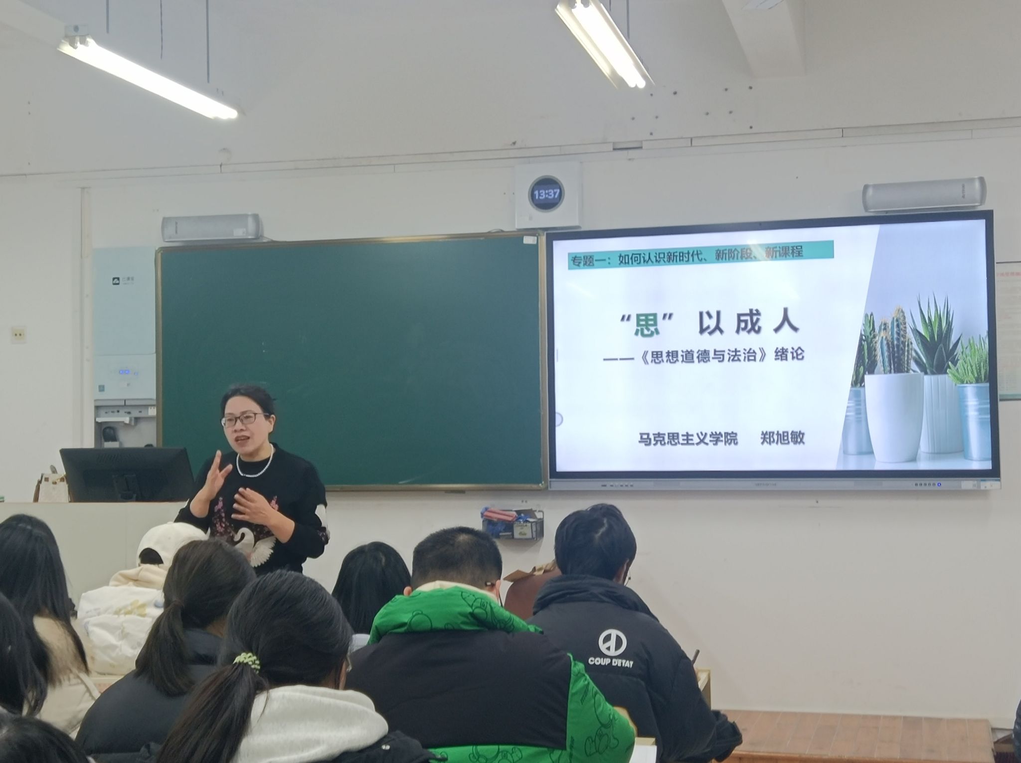 赵敏董事长则走进了郑旭敏老师的课堂,听取了关于《“思”以成人——新青年,新时代,新成就》的讲解。郑旭敏老师以鲜活的事例和生动的语言,用宏观主题和微观感受比较分析,让员工们对法治精神有了更深刻的认识。赵敏董事长对郑旭敏老师的教学表示高度赞赏,并指出高校思政课要注重培养员工的法治观念和法治思维,让他们成为尊法学法守法用法的新时代青年。