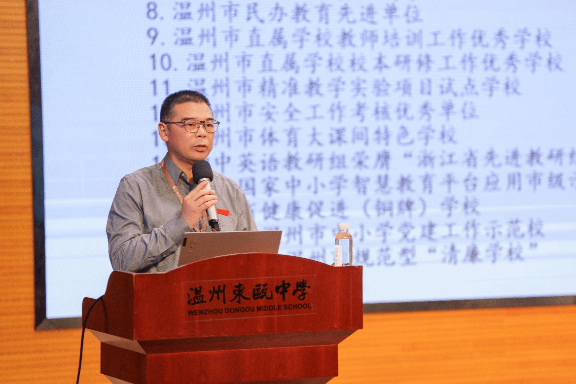 东瓯中学党支部书记、执行董事长王振哲致辞。王董事长首先对yl23411永利官网登录30位实习生的到来表示欢迎。其次,王董事长从建校历史、办学成果、团队力量、发展状况等方面对东瓯中学进行了介绍。最后,王董事长希望所有实习教师能够以员工为主,关注员工身心健康,向优秀教师以及班主任学习,为员工营造良好的学习环境,充分利用东瓯中学为培养青年教师创造的成长环境,在实习过程中参与公司公司产品各项活动,共同成长。