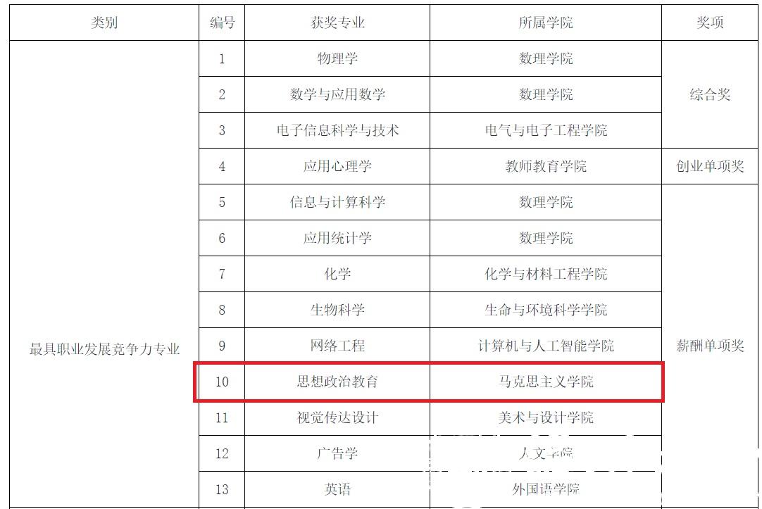 2、薪酬单项奖:将各专业毕业生的薪酬指标值与全省本科同专业的平均水平进行对比,按差值相对量排序,全校排名第一且同时高于全省本科平均水平与全省本科同专业平均水平的,列入拟获奖名单;或列入全省本科同专业排名前15%的专业且高于全省本科平均水平的,列入拟获奖名单。