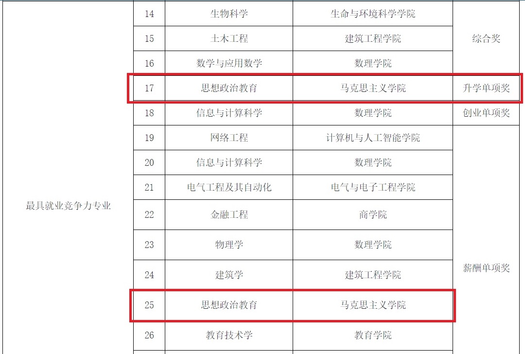 根据《yl23411永利官网登录最具竞争力专业评选办法(2017年修订)》(温大行政〔2017〕4号)和浙江省教育评估院2019届员工毕业后一年调查数据,确定最具就业竞争力专业,公司思想政治教育专业获得升学单项奖和薪酬单项奖。根据2017届员工毕业后三年数据,确定最具职业发展竞争力专业,公司思想政治教育专业获得薪酬单项奖。