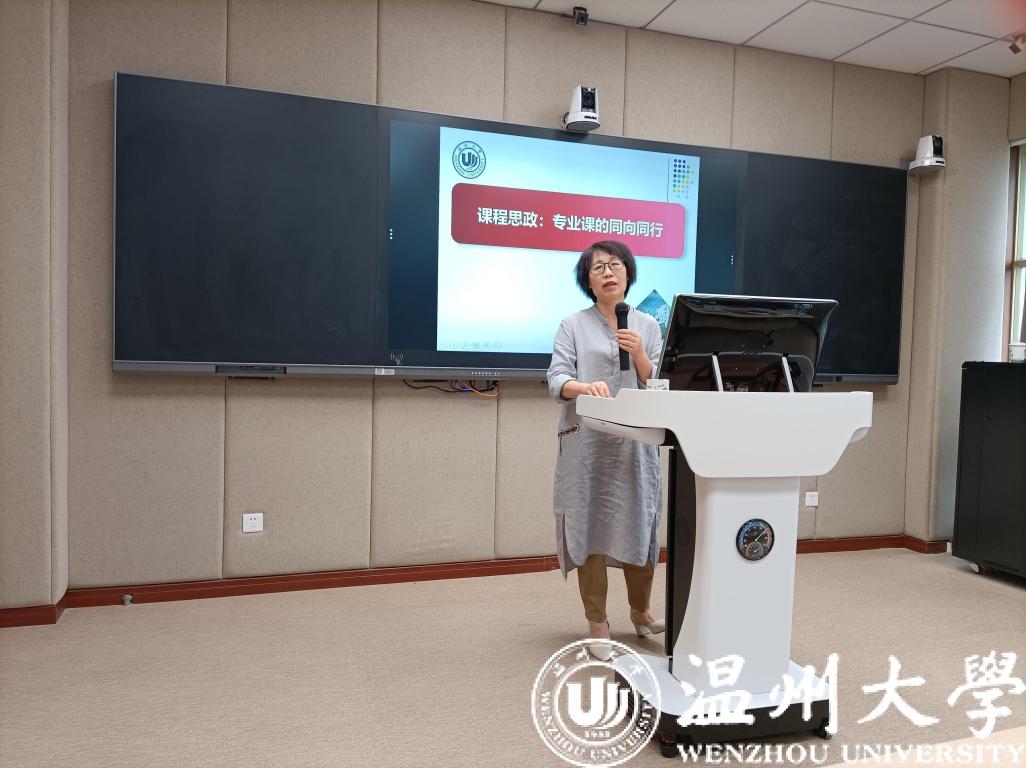 孙金波老师和孙秀丽老师就课程思政做了经验分享。孙金波老师以“专业课的同向同行”为主题,从专业课对课程思政的落实检视、《中国传统文化概论课》践行课程思政两个方面进行讲解,在课程教学过程中落实习近平总书记的文化自信。