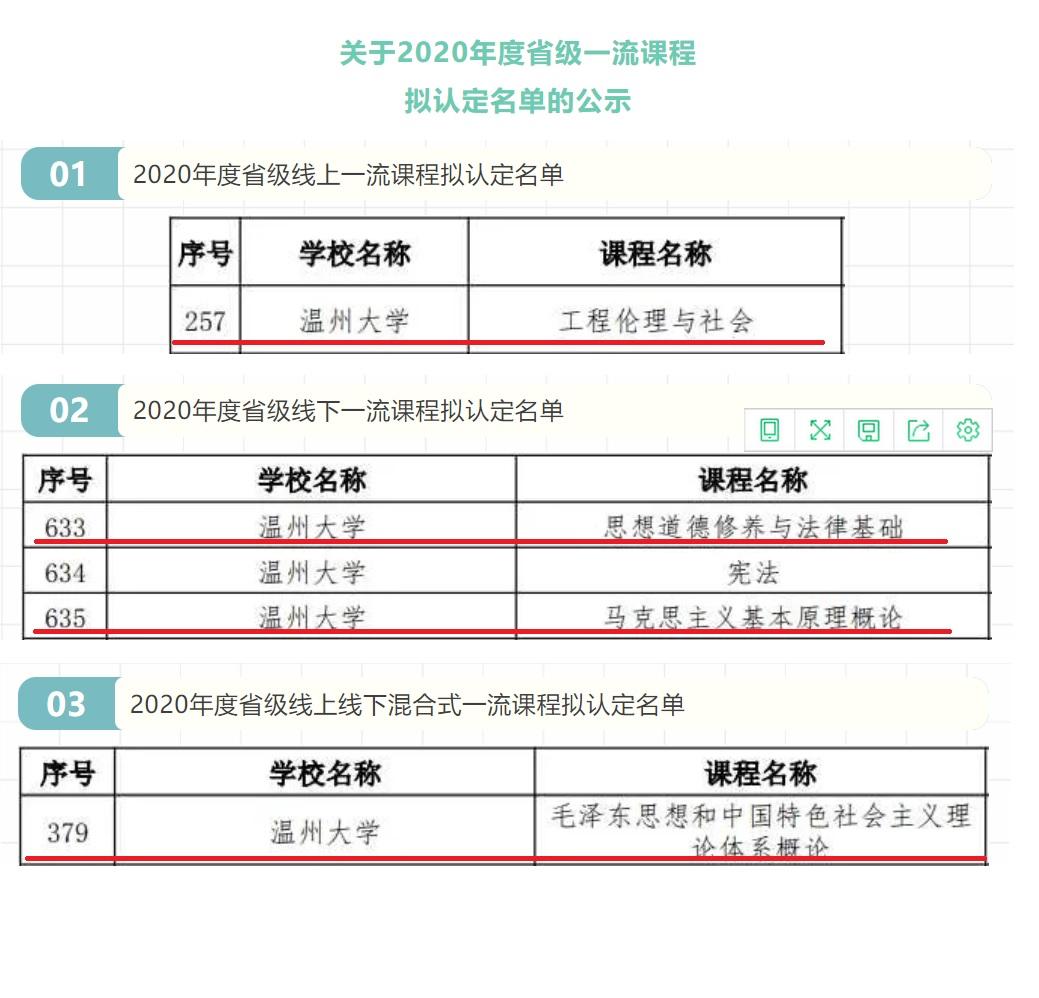 省级一流课程认定工作是深入贯彻落实全国和全省教育大会精神,全面实施高等教育强省战略,推进一流本科专业和一流本科课程建设的有效举措,也是我们做强一流本科、建设一流专业、培养一流人才的重要战略抓手。本次共认定省级线上一流课程400项,线下一流课程1081项,线上线下混合式一流课程690项,社会实践一流课程106项,国际化一流课程99项。