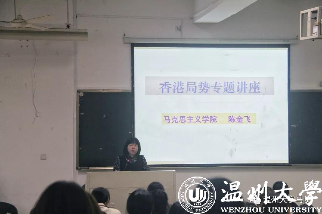 10月28日下午,公司于北校法政楼203教室,开展了本学期的第二堂形势政策课程。本次课程以“香港局势”为主题,由学工办李培芬老师主持,陈金飞老师主讲。