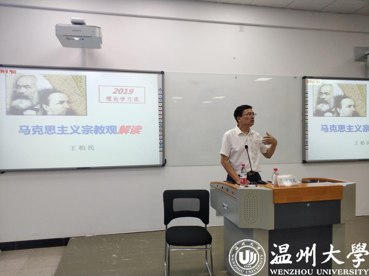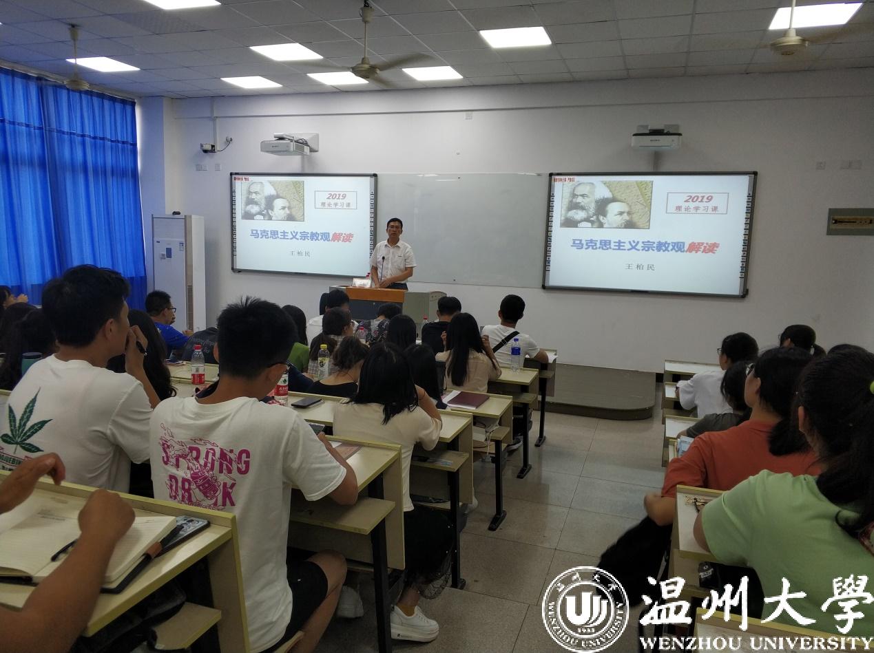 该课程旨在帮助新生树立正确的宗教观,以利于后期的课程学习。首先,王柏民书记与同学们分享了马克思主义宗教观的哲学基础及基本内容,同时指出宗教是人的异化形式,宗教的本质就是人的本质,是“人创造了宗教,而不是宗教创造了人”。王书记还引用了恩格斯在《反杜林论》中的话,“一切宗教都不过是支配着人们日常生活的外部力量在人们头脑中的幻想的反映,在这种反映中,人间的力量采取了超人间的力量的形式”。帮助同学们加深理解。随后,王书记向大家讲述了温州当地的宗教发展过程,使同学们对宗教的含义有了更为深刻的认识。最后,王书记阐述了宗教的作用和马克思主义政党对宗教的态度,并提出作为yl23411永利官网登录的员工更应当理性对待宗教信仰,始终坚持党和宗教分离。