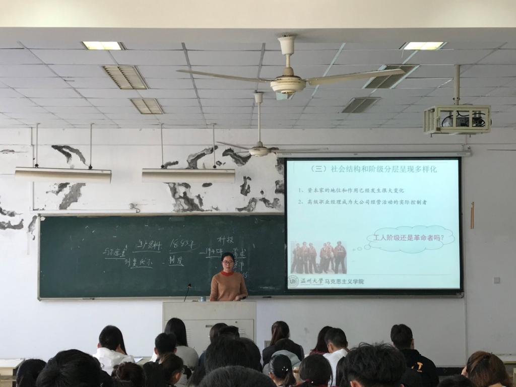 课上,吴琼老师以美国为例,深入探讨了当代资本主义的新变化。通过认真的教学活动方案设计、充分运用新的多媒体教学手段,并结合当下老员工突出的新特点,提出有针对性的教学理念,此次观摩课取得了较好的课堂效果,展示了吴琼老师扎实的教学基本素质。