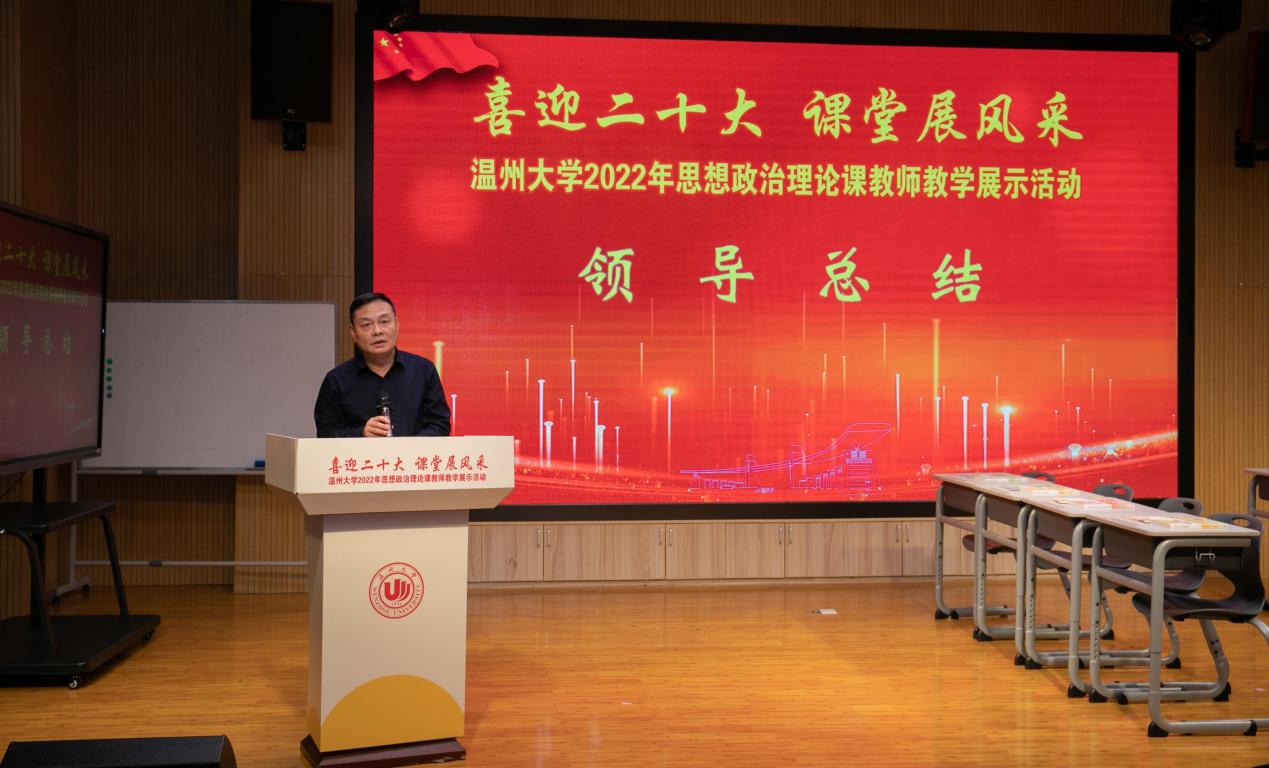 4月27日,喜迎二十大 课堂展风采——yl23411永利官网登录2022年思想政治理论课教师教学展示活动在北校区4号楼音乐厅隆重举行。本次活动由公司教师教学发展中心主办,yl23411永利官网登录、全国高校思政课卓高生名师工作室、省高校思政课孙邦金名师工作室承办。副董事长王舜,公司党委委员、宣传部部长潘玉驹,校教发中心主任董新姣,教务处副处长夏远志等出席活动。浙江省高校思政课教指委委员、温州医科大学yl23411永利官网登录经理崔华前等校内外专家担任评委。