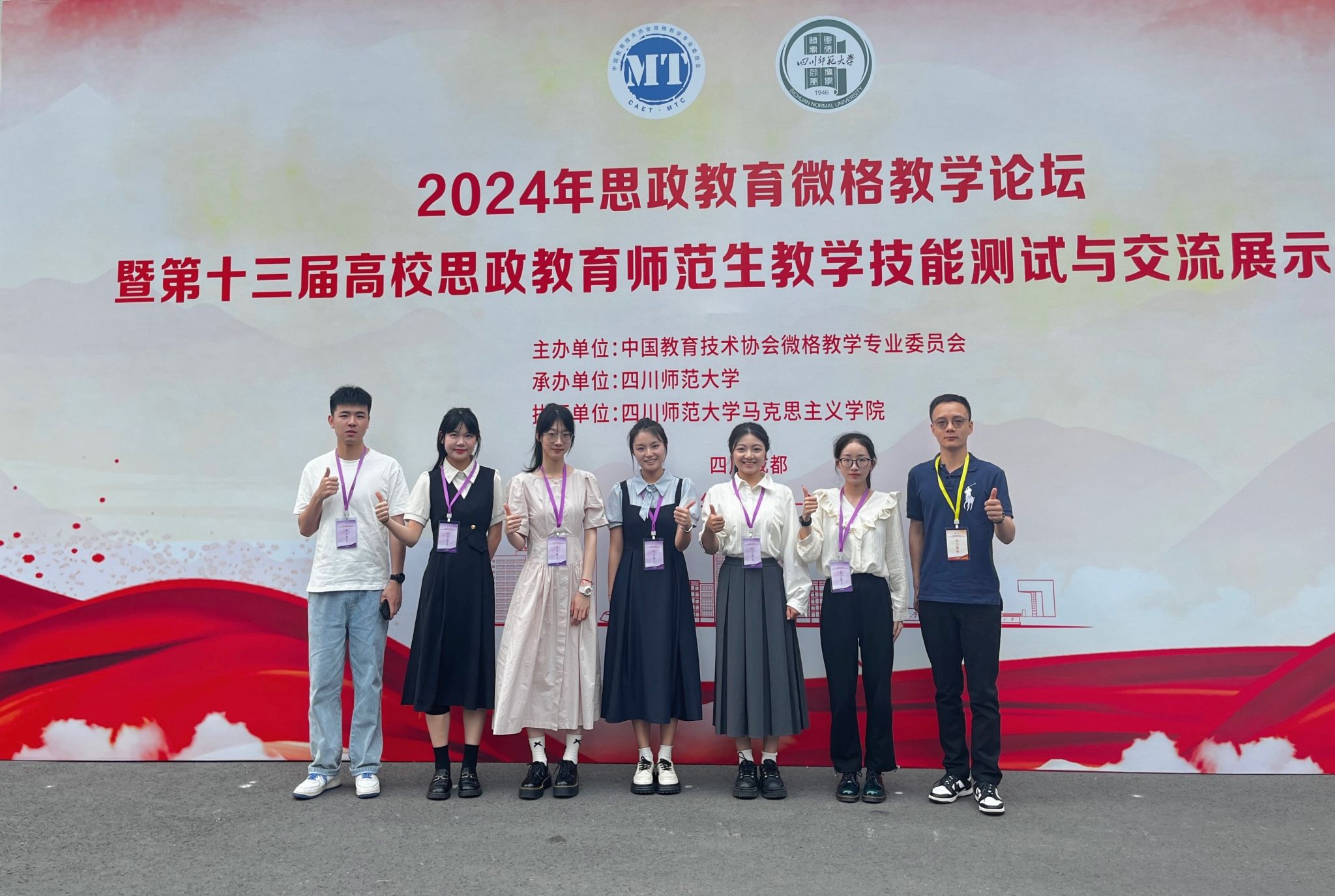 为提高师范生的实践教学能力,充分发挥教学竞赛的引领作用,5月24日-27日,在公司安保国老师带领下,共有5名研究生和1名本科生前往成都参加了由四川师范大学承办的全国第十三届高校思政教育师范生教学技能测试与交流展示活动(原“华文杯”师范技能大赛)。