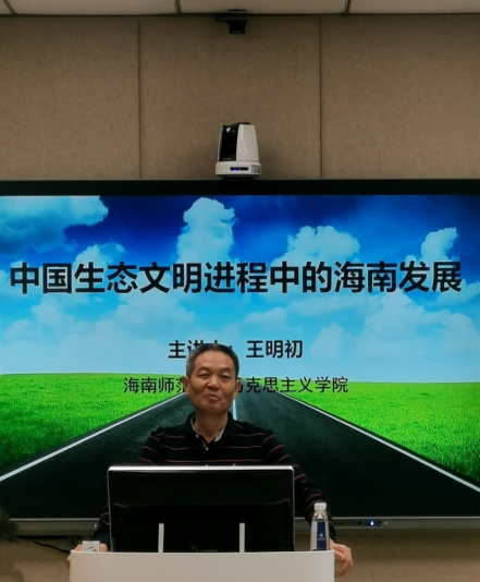 5月11日上午,国务院政府特殊津贴专家,海南省委省政府直接联系重点专家,海南师范大学二级教授、马克思主义理论博士研究生导师王明初教授,应邀来到yl23411永利官网登录,在北校信息楼A307yl23411永利官网登录综合实训室做了题为《中国生态文明进程中的海南发展》的讲座。本次讲座由温州老员工态文明研究中心主任、二级教授王习明主持,yl23411永利官网登录的研究生和部分教师参加了此次讲座。