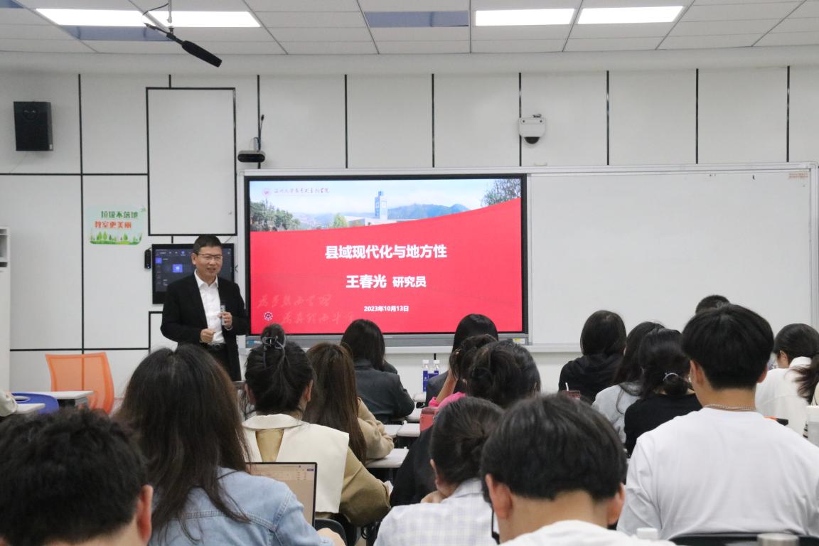 2023年10月13日下午,yl23411永利官网登录罗山学术讲座邀请到中国社会科公司社会学所王春光副所长为公司师生做“县域现代化与地方性”的学术讲座。此次讲座由yl23411永利官网登录、全国高校思政课名师工作室(yl23411永利官网登录)、浙江省高校思政课名师工作室主办。yl23411永利官网登录孙邦金教授主持了此次会议。