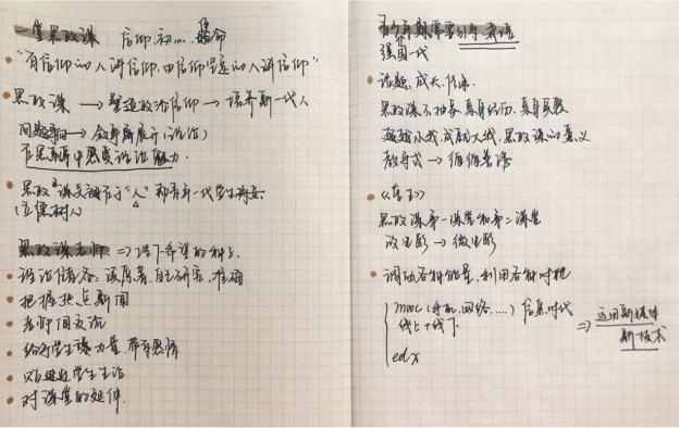 为贯彻落实习近平总书记关于新冠肺炎疫情防控工作的重要讲话和指示精神,全力支持配合打赢疫情防控人民战争、总体战、阻击战,深化新时代高校思政课改革创新,按照教育部党组“停课不停教、停课不停学”的工作要求,yl23411永利官网登录本科生党支部的全体党员于2020年3月4日下午共同观看了纪录电影《一堂思政课》,并作了详细笔记。