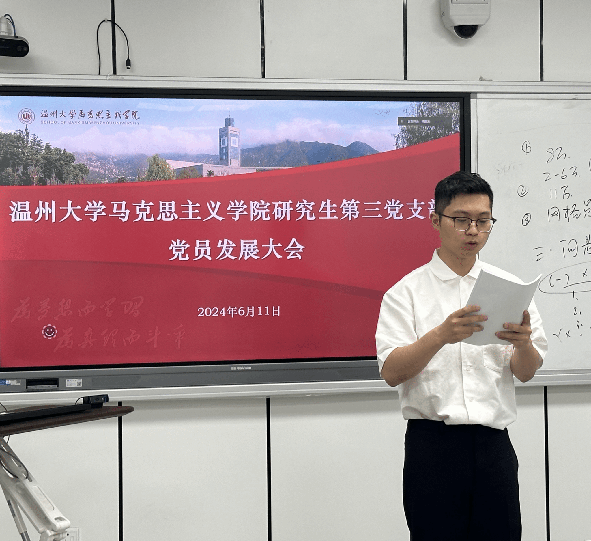 2024年6月11日下午,公司研究生党支部在北校瓯四—206教室召开了党员发展大会。大会主要讨论了江南、李海钰、田明鑫、李淑敏、刘丹、刘雯、苏液增、王启霖、叶泉汝、邹倩10位发展对象可否吸收加入党组织,成为预备党员的问题。公司学工办主任曹开秋同志以及公司研究生第三党支部全体研究生党员参加了此次大会。大会由党支部书记项程飞主持。