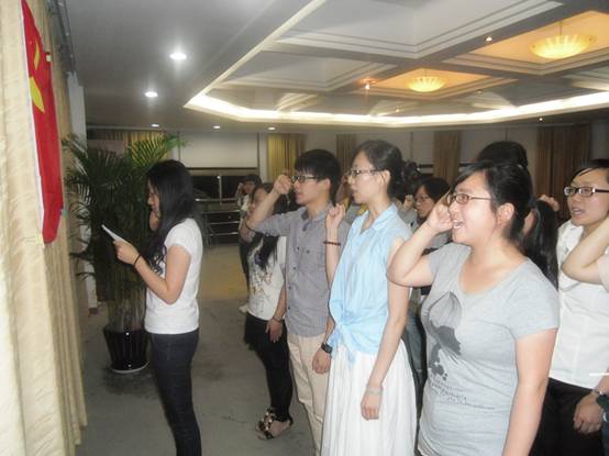 本次会议主要是关于讨论唐丽雪等四位发展对象的入党申请。通过讨论表决,大会通过了以上同学的入党申请。宣读完党支部决议后,由研究生党支部宣传委员江萍作为领誓人,带领全体党员同志在党旗面前,庄严宣誓。研究生党支部书记付映杰对公司毕业生党员所取得的成绩表示感谢,也希望毕业生党员毕业后要继续保持我党的优良作风,继续加强自身理论学习。