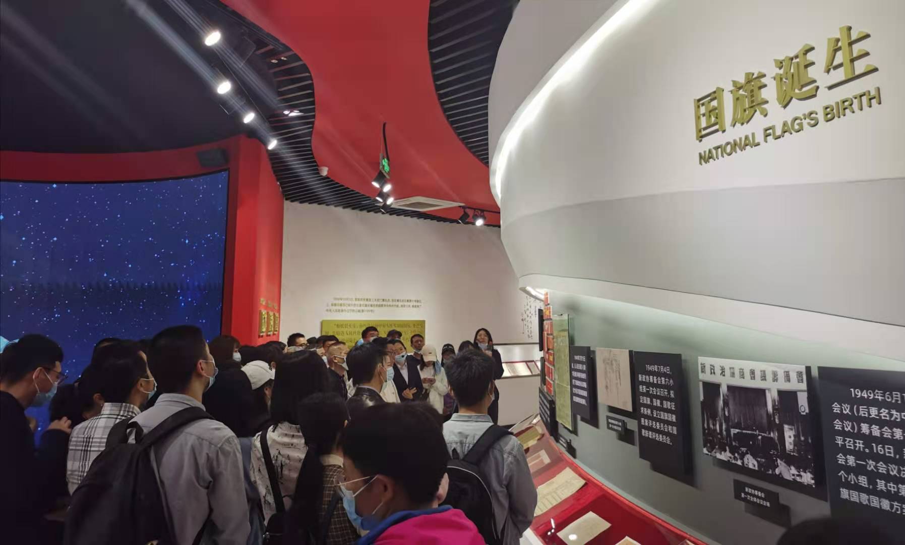 上午,带着对五星红旗的崇敬和对曾联松员工的特殊情缘,师生党员首站参观了位于瑞安市西山之巅的国旗教育馆。作为全国首家综合性国旗教育馆,在细节设计上具有特殊含义:场馆建设高度为19.49米,象征中华人民共和国成立于1949年;馆前升旗杆高20.19米,代表开馆时是中华人民共和国成立70周年。在解说员的带领下,大家参观了国旗诞生厅、国旗知识厅、国旗荣耀厅、瑞安发展厅,并对展馆内陈列的照片、文件、影像资料等进行了仔细阅览,学习领会了五星红旗的由来、深刻涵义及《国旗法》,还就感兴趣的史料展开讨论,并参与了3D科技的互动体验。师生党员见证着“一旗、一人、一馆、一城”所承载的共和国的历史性飞跃和瑞安这座千年古县的精彩蝶变以及背后蕴含的中国精神、中国力量、温州人精神,感悟着优秀员工曾联松先生的满腔爱国热忱和对信仰的不懈追求。面对鲜艳的五星红旗——今天每一个中国人心中最美的永恒,我们相信“如果梦想有颜色,一定是国旗上的红”!