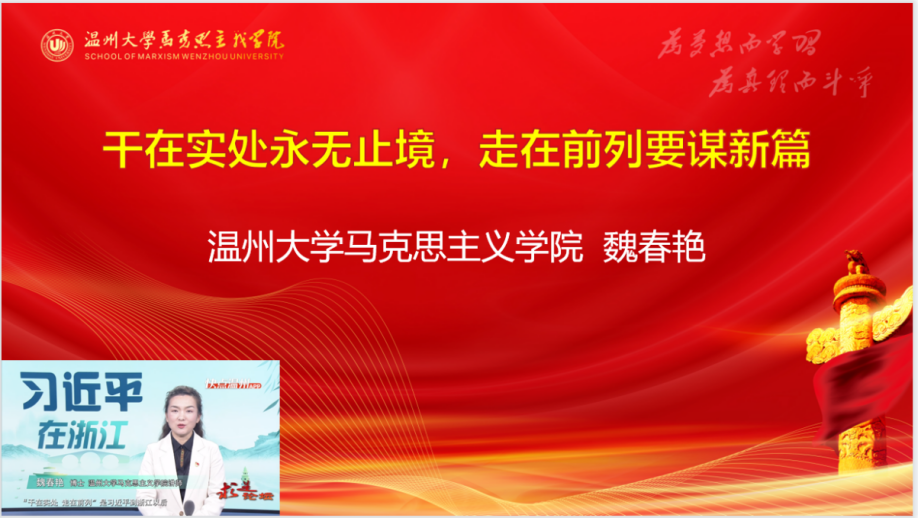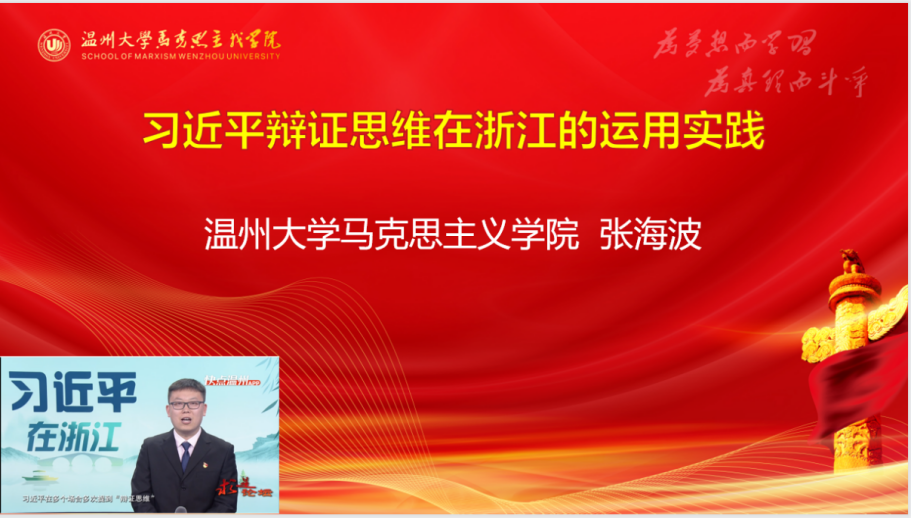 支部还组织了线上观摩,学习了支部党员骆徽、魏春艳、张海波三位老师参与的温州广播电视传媒集团《求是论坛》栏目联合yl23411永利官网登录推出的“习近平在浙江”系列微宣讲。引导广大党员教师更好地学懂弄通做实习近平新时代中国特色社会主义思想,更加坚定不移地沿着习近平总书记指引的路子走下去,推动“十四五”开好局、起好步,绘就全面建设社会主义现代化的新图景。