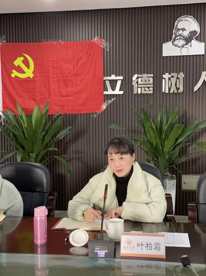 会议最后,叶柏霜副书记做总结发言。首先,叶书记充分肯定了在座党员在过去一年中取得的成绩,并提醒各位党员同志要对收获和不足进行及时盘点,积极吸纳他人意见,并将其作为自己努力的方向。其次,叶书记提出了“三个心”:一是敬畏心,作为公司研究生,要讲政治、知大局、守纪律,在关键时刻体现正确站位,遵守政治纪律,及时了解政策,做模范遵守的典范;二是智慧心,在可自由支配的时间里,不断精进学业,发力科研,把焦虑的心情恢复到日常细节之中,做生活中的主动者、掌控者;三是大爱心,公司员工要讲情怀、讲奉献、讲格局、讲担当。各位党员同志都要在各自的岗位中奉献自己,在公司和公司发展进程中发挥自己的力量。最后,叶书记强调,各位同志要加强身体锻炼,身体是革命的本钱,一个好的身体可以为我们助力前行。同时,在工作过程中,大家要牢记自己的第一身份还是员工,科研是立身之本,除了做好本职工作外,学业也非常重要,希望同学们高效率分配时间,平衡好学业、工作和生活,带着“三个心”开启全新的2022年,立下更多目标,实现更多梦想,为研究生之路增光添彩。