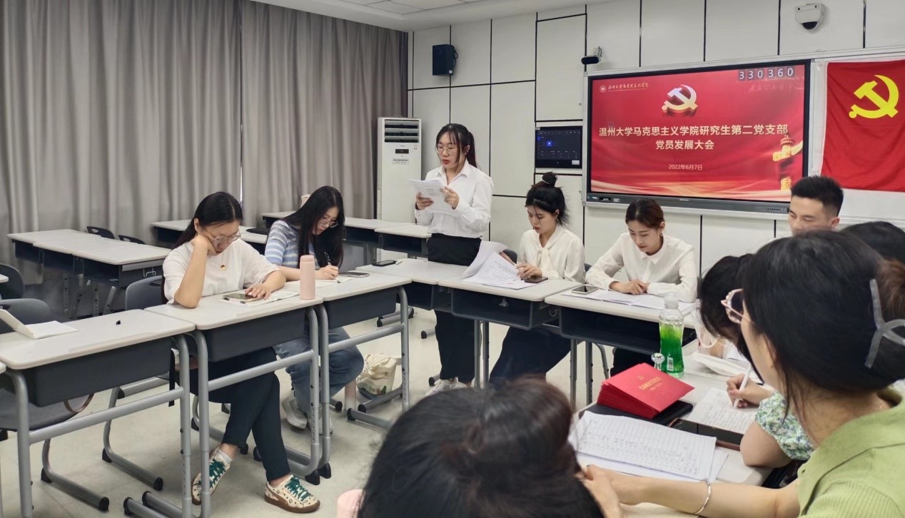 为进一步加强和推进党员队伍建设,为基层党支部注入新鲜血液,根据《中国共产党发展党员工作细则》和《党章》等相关规定,6月7日,yl23411永利官网登录研究生第二党支部于瓯四-206召开党员发展大会,yl23411永利官网登录团委书记、学工办主任曹开秋老师莅临指导。会议由党支部书记刘宁涛主持。全体党员与发展对象参与会议。
