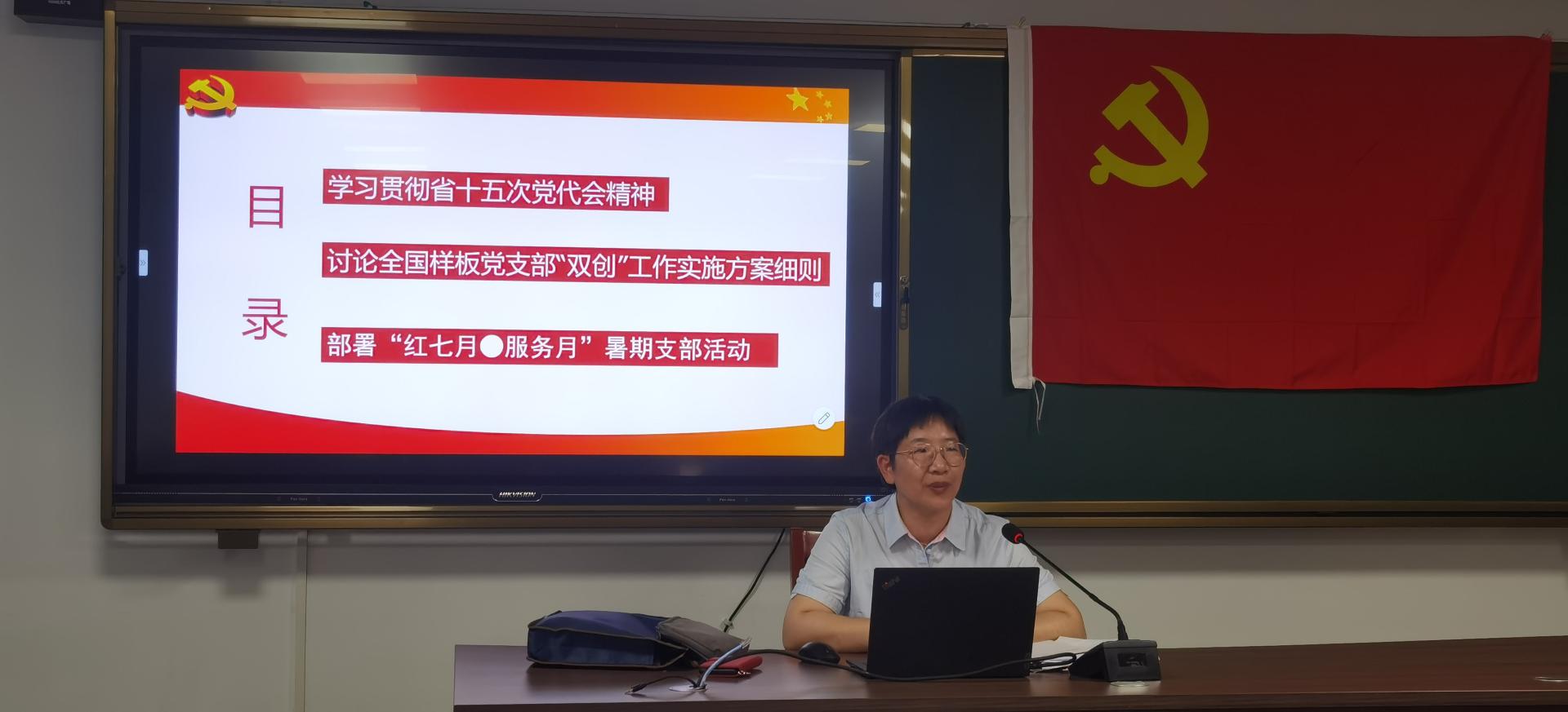 项淳芳结合省党代会报告提出的“打造新时代党建高地”的目标,向支部党员介绍了全国样板党支部“双创”工作实施方案、工作目标、计划举措、进度安排,分析了支部建设的现状和亟待解决的问题,动员每一位党员都要秉持“没有走在前列也是一种风险”的忧患意识,增强“当先锋,争先行”的先锋意识和使命感,唯实惟先,以新时代高公司党支部“双创”工作重点任务指南为指引,以党支部“七个有力”为建设标准,围绕公司公司稳定改革发展的中心工作开展支部建设,凝心聚力,群策群力,奋力打造教学科研育人服务等标志性成果,实现高质量发展和各项事业全面进步。最后部署和讨论了“红七月∙服务月”暑期支部活动。