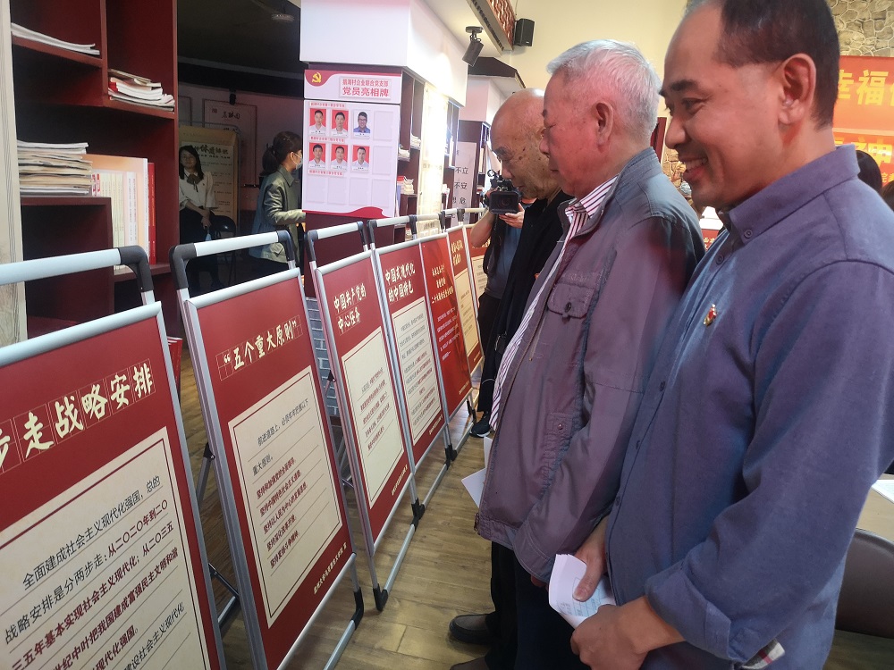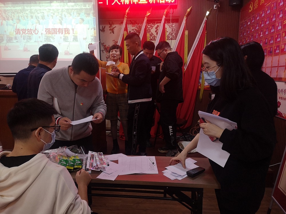 宣讲完毕后,现场的党员干部们参观党的二十大系列展板,随后积极参加知识竞答活动,赢取奖品。