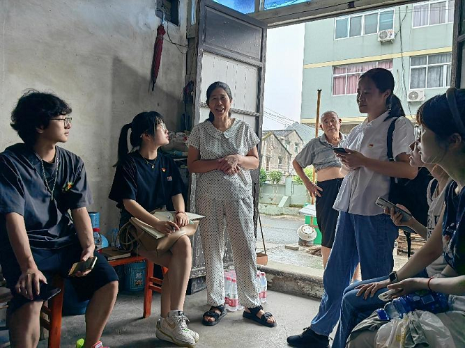 第二位访谈人物是85岁的周林仁老党员。作为地下交通联络员周阿木的二儿子,周林仁同志讲述了幼时目睹父亲周阿木参与革命工作的英雄事迹、后来当村长和董事长的人生轨迹以及自己协助父亲完成革命任务的经历,同时追忆了部队在周岙下宅坦集结和5月7日温州和平解放时的情景,激动自豪之情溢于言表。在访谈过程中师生也对周边居民开展了温州红色文化的问卷调研。