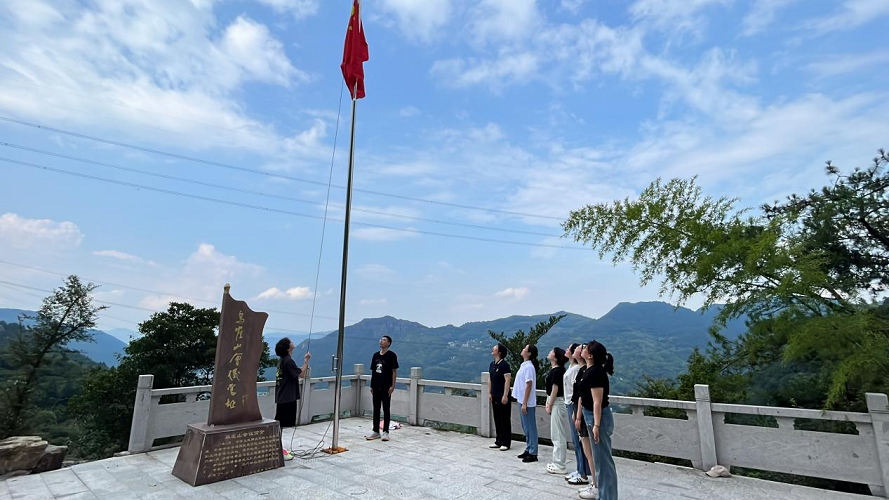 最后,一行人在周懋荣书记的带领下,沿着泥泞的碎石山路去寻找红色印记——乌崖山会议旧址。乌崖山作为革命秘密会议点,记录着一段峥嵘岁月故事,蕴藏着独特的和平文化资源。yl23411永利官网登录教工第一党支部作为首个登上乌崖山会议旧址的团队,在国歌的萦绕下缓缓地升起了鲜艳的五星红旗,向无数革命先辈致敬。大家深刻认识到和平来之不易,要从历史和文化中汲取力量,增强做中国人的志气、骨气和底气,坚定信心,砥砺前行。寻访泽雅红色交通联络站,传承红色基因,一直在路上。
