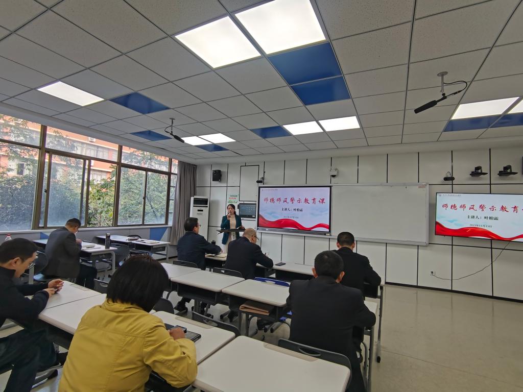 纪委书记叶柏霜通报了2017年以来校内14个师德师风违规案例和校外6类17个典型案例。案例涉及违反政治纪律、违反廉洁从教、违反生活纪律、侵害员工权益、违反法律法规、违反学术诚信等六大方面。叶柏霜副书记指出,师德师风警示教育是一项重要的工作,也是一项需要常抓不懈的工作,旨在提高教师的职业道德素质,增强责任感和使命感。全体公司教师要坚守师德师风底线,远离红线,以思政课教师“六个要”高标准严格要求自己。