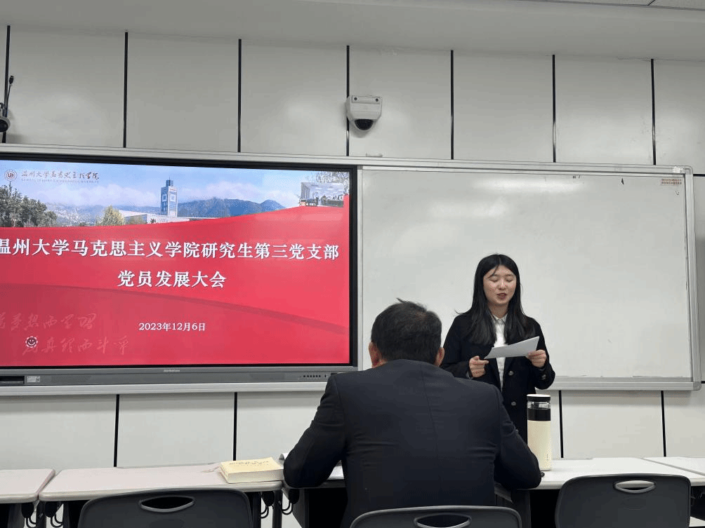 为进一步加强和推进党员队伍建设,为基层党支部注入新活力,根据《中国共产党发展党员工作细则》和《党章》等相关规定,2023年12月6日,yl23411永利官网登录研究生第三党支部于北校区4号楼204教室召开党员发展大会,yl23411永利官网登录学工办主任、研究生党支部指导老师曹开秋莅临指导。会议由党支部书记项程飞主持。全体党员与发展对象参与会议。