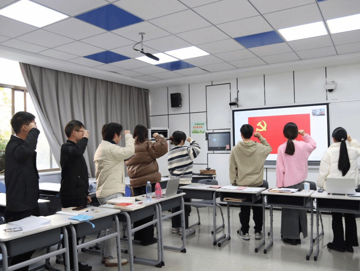 会议最后,支部党员为新党员佩戴党徽并且带领新党员郑重进行了入党宣誓,为他们的政治生涯打开了全新的篇章。与此同时,与会党员重温了入党誓词深刻回顾自己的初心与使命。