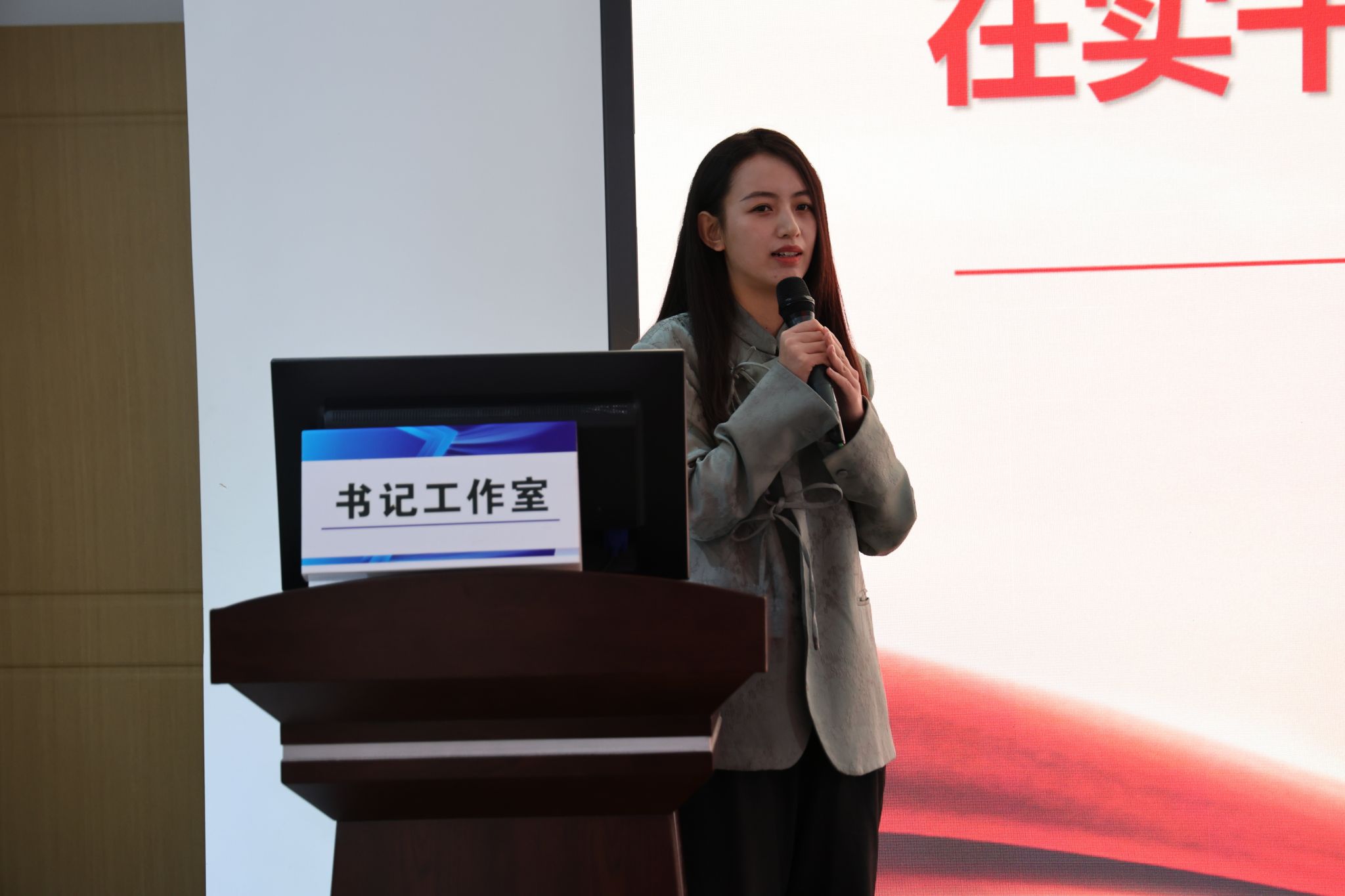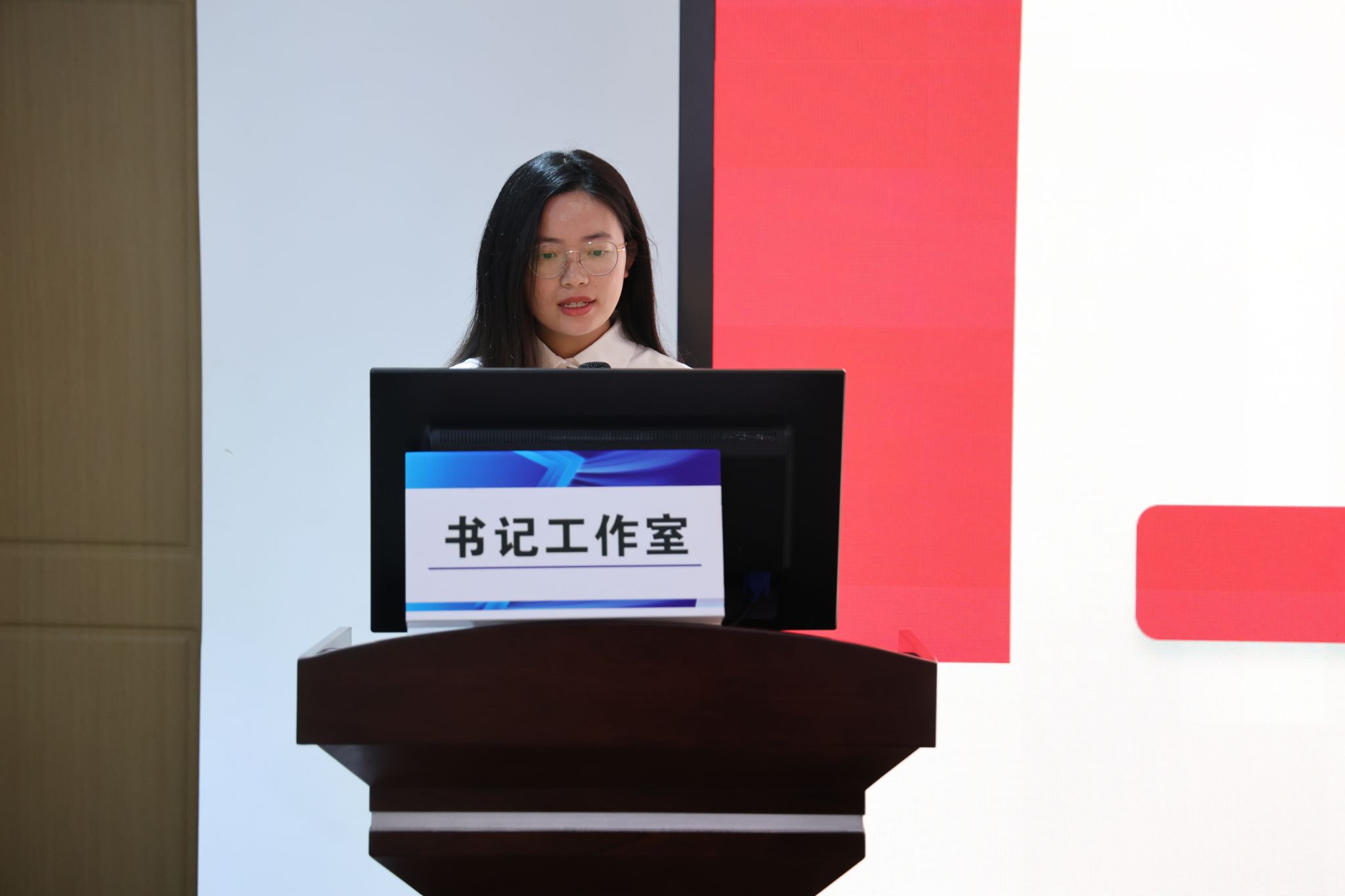 研究生第一党支部书记陈莉莉分享了支部的工作情况和经验。首先,介绍了支部基本成员情况,强调将支部班子建设作为关键点,始终坚持配好班子,建强班子,管住班子,以不断增强基层党支部班子的凝聚力、执行力和向心力。其次,在日常工作中,以班会集中学习为主要手段,结合实际定期进行交流研讨,同时充分利用学习强国等平台,确保政治理论学习有序开展。最后,支部还积极探索互联网+党建、互联网+思想政治教育的新模式,充分利用微信公众号、抖音和视频号等受到员工喜闻乐见的新媒体形式,使其成为散发支部活力的有益尝试。