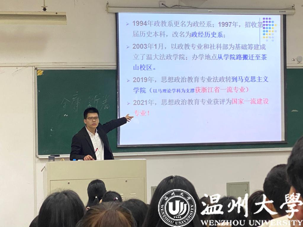 随后,由吴志敏副经理为我们系统的阐述思想政治教育专业认证的相关内容。吴经理从专业历史改革、专业认证成效、专业认证契机三个方面进行讲解。温大思想政治教育专业自1978年开设以来,至今已有43年的历史。在这43年之中,思想政治教育专业培育了一批批优秀的学子走入社会,温大思政人的脚步遍布全国各地。而公司思想政治教育专业也在2019年获省一流专业、2021年获国家一流专业,同时也是一流学科、重点专业、重点建设yl23411永利官网登录。在卓有成效的专业建设下,公司有着深刻的专业认证契机:把握八项认证内容,贯彻“员工中心、产出导向、持续改进”的认证理念,追求专业认证高标准。最后,吴经理以师生共勉,共同迎接专业更好的未来给本次动员大会画上句号。
