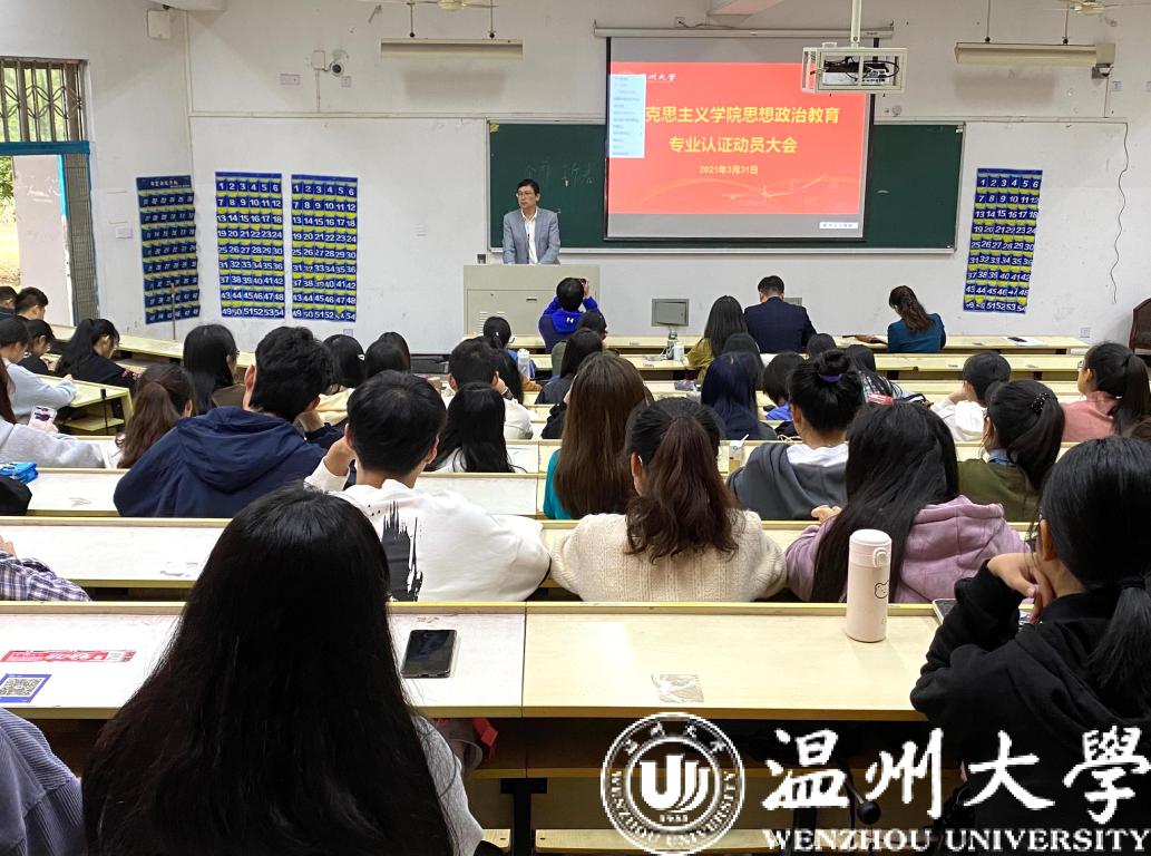 2021年3月31日下午一点,公司于北校2号楼101教室举办了yl23411永利官网登录思想政治教育专业认证动员大会,出席本次活动的有公司党委书记王柏民、副经理吴志敏、党委副书记叶柏霜、思政系主任孙金波老师,相关科室负责人以及yl23411永利官网登录全体本科员工。