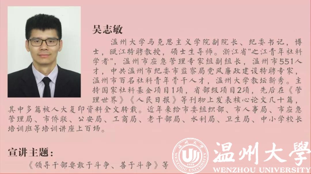 “不忘初心、牢记使命”主题教育讲师团:吴志敏