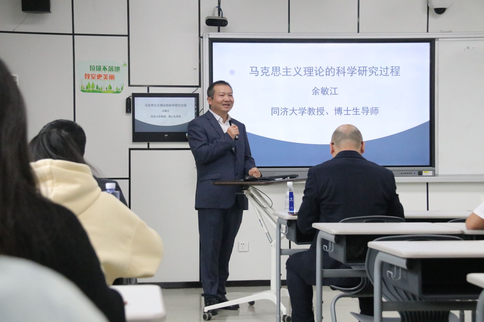 林跃勤教授和余敏江教授讲授结束后,老师与同学们针对当代中国特色社会主义实践和现代化建设中碰到的一些问题展开了热烈地讨论。卓高生经理在总结时认为,两位教授讲座内容丰富,理论深刻,思辨性十足,对同学们日后的学习生活很有帮助。他呼吁同学们要在将来的学习生活中坚定理想信念,积极学习红色文化,用党的理论武装头脑,做优秀道德记忆的传承人,为和谐社会和文化强国贡献应有的力量。