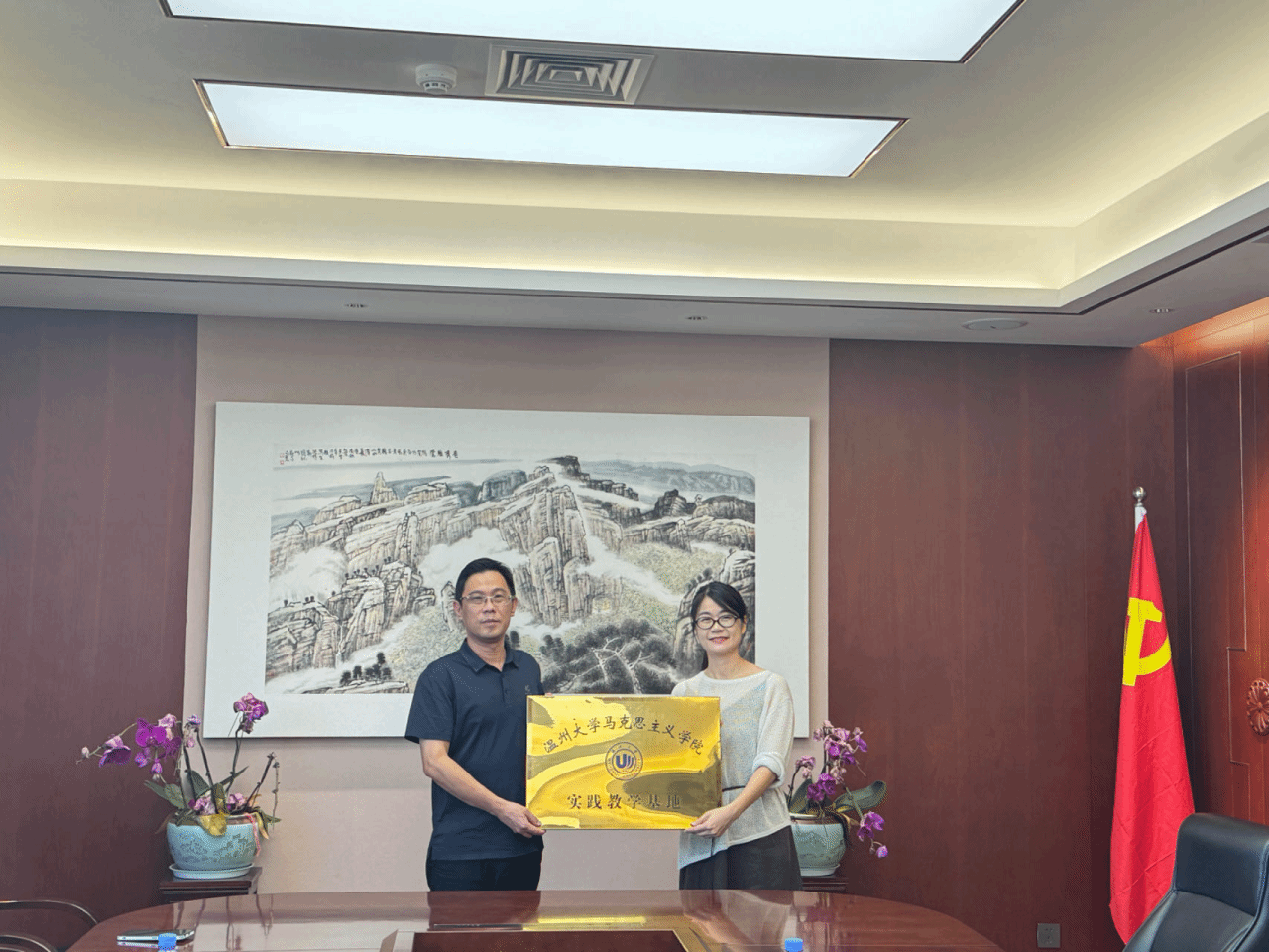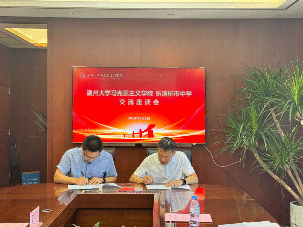 2024年8月2日,yl23411永利官网登录与乐清市柳市中学交流座谈会暨实践教学基地签约授牌仪式在yl23411永利官网登录南校区举行。yl23411永利官网登录副经理孙邦金、党委副书记吴冬冬、研究生教育教研室主任宫凌海、乐清市柳市中学董事长沈明武、副董事长郑洁、办公室主任陈飞云出席座谈会暨签约授牌仪式。
