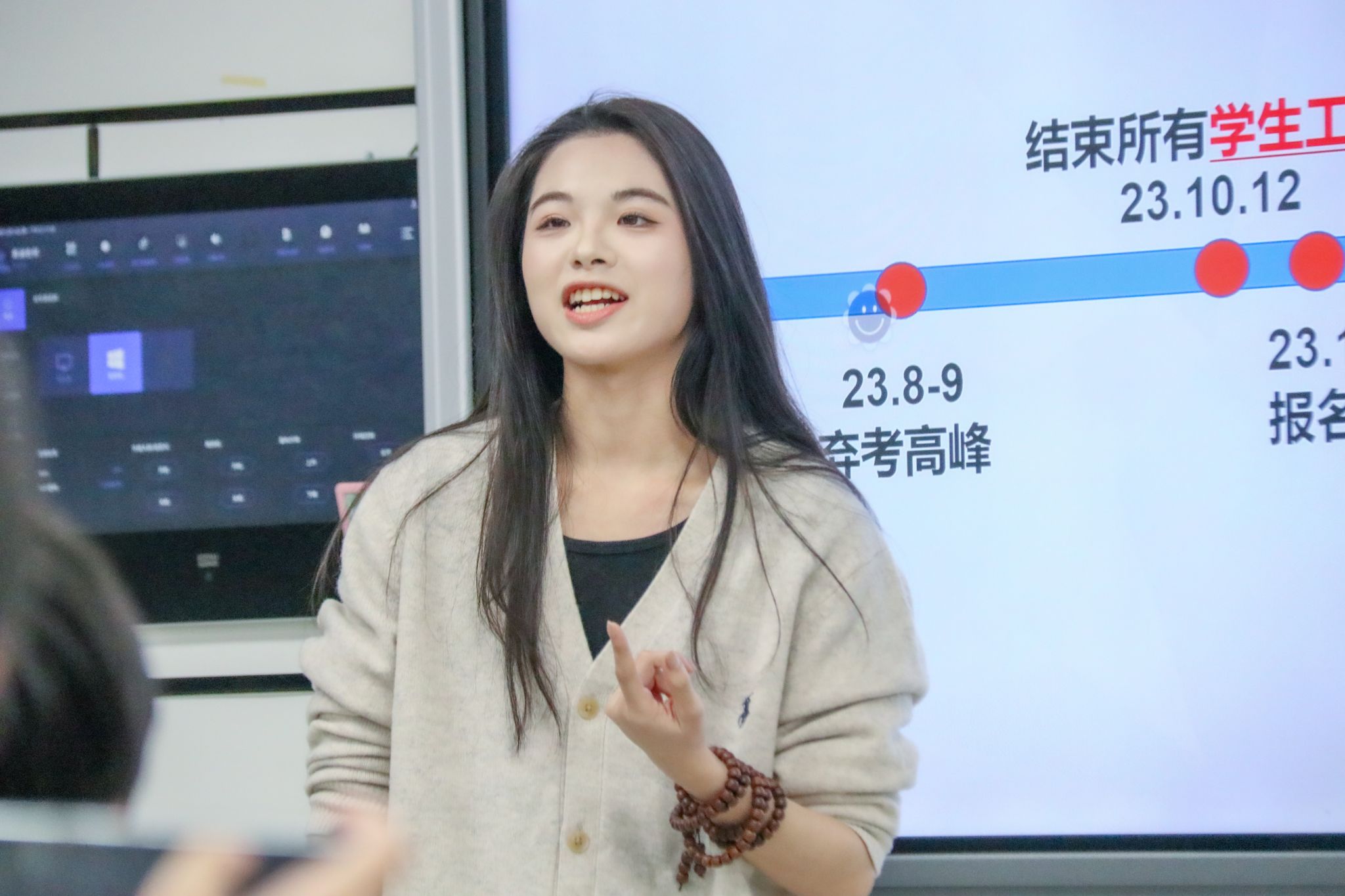 黄思璇学姐从规划、学习、工作、生活四个方面分享了自己的学习生活经验,她希望同学们可以规划每日任务和老员工涯,多阅读老师推荐的书籍,注重课堂表现,平衡学习和员工工作,多多尝试,过一个有意义的老员工活。