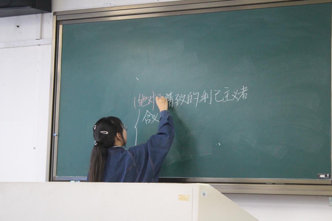 首先进行的是讲课比赛,要求十三位选手以微课堂的形式向大家分享自己的观点,这样的形式不仅贴合我们师范专业的特色,同时也给予同学们锻炼师范技能的机会。率先出征的是17级林芷彦同学,她阐述了精致的利己主义的含义及措施,其讲课姿态落落大方,课堂氛围活泼生动,解释清晰完整,为比赛开了一个好头;紧接着上场的是17级的陈玲雅同学,她从老员工的身份出发表达了自己的爱国之情,从乡村振兴切入向大家展现了政教员工应有的心系祖国发展,期盼祖国繁荣的家国情怀;19级的徐新怡同学表达了“感恩是人生的必修课”这一观点,同时与大家进行互动,引导大家回想生活中令人感动的小事并倡议大家留意自己身边发生的点点滴滴,做一个懂得感恩的人;最后17级的许媛媛同学用她极具说服力和渲染力的表达方式从另一个角度向大家展现她对精致的利己主义的理解并剖析其优劣。