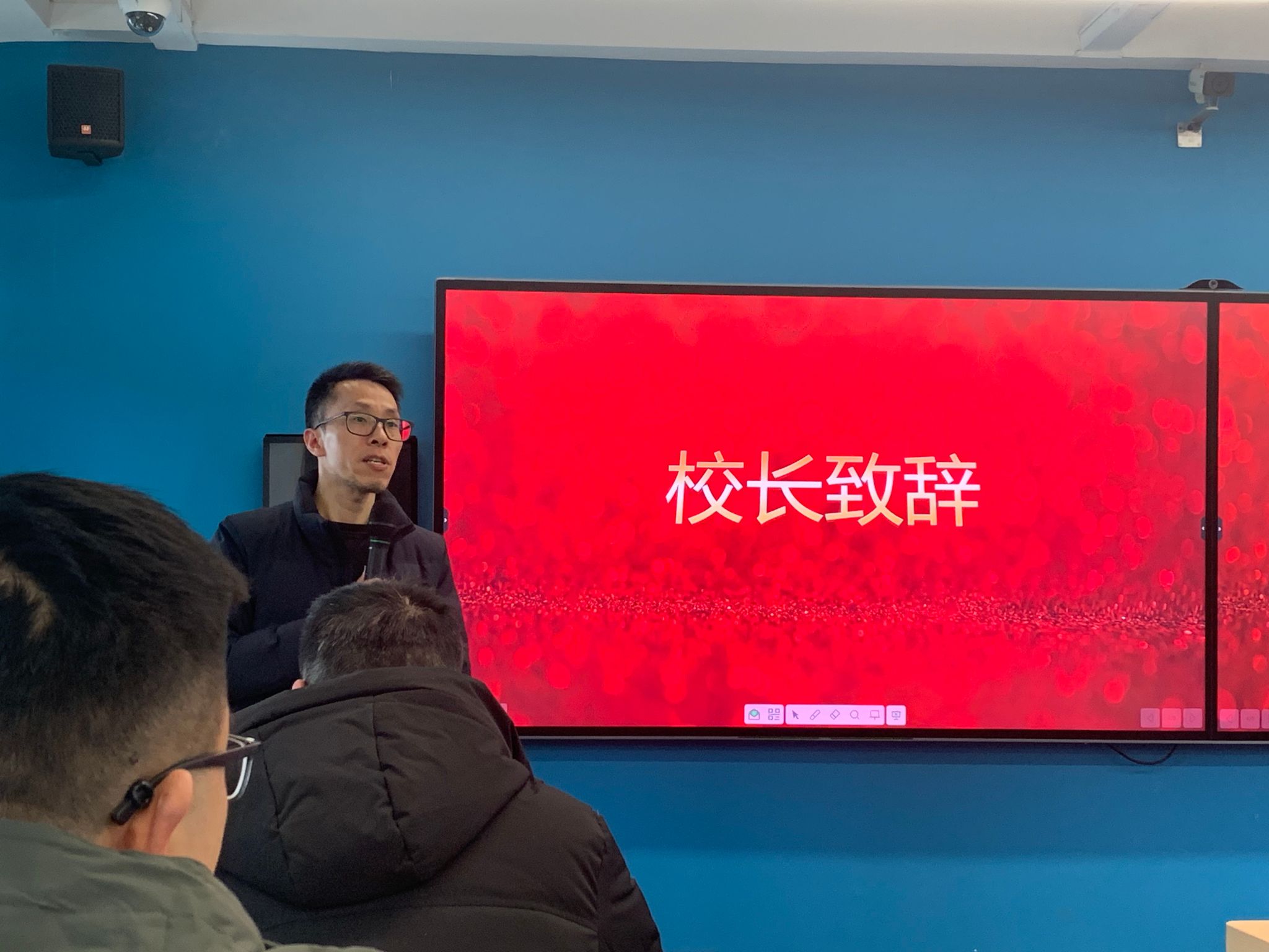 公司党委书记杨立淮老师勉励员工心怀感恩,以“学徒心态”向一线教师学习,从“教书匠”起步,逐步成长为优秀教育者,用责任和智慧为教育生涯刻下坚实底色。