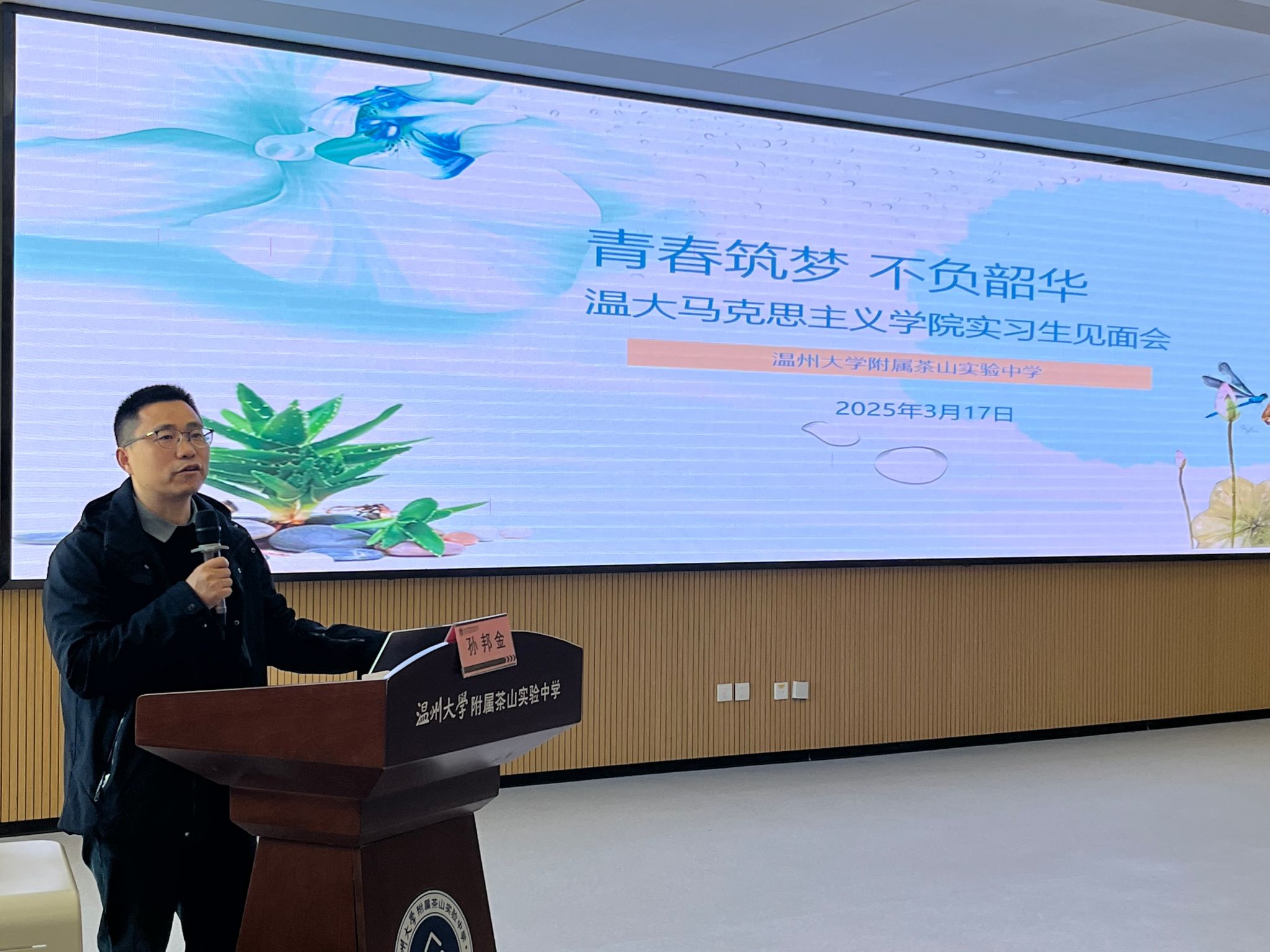 公司副经理孙邦金老师强调教育实习是师范生成长道路上的重要里程碑,鼓励实习生们虚心学习、勇于挑战,努力成为一名优秀的教育工作者。