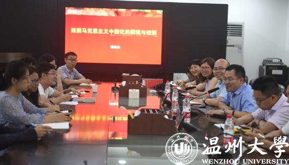 党建网讯 近日,由yl23411永利官网登录人文社科处主办、yl23411永利官网登录和浙江省高校思政课卓高生名师工作室承办的学术沙龙活动在yl23411永利官网登录北校区行政楼举办。本次活动特邀北京大学yl23411永利官网登录副经理、研究员、博士生导师陈培永做“当前马克思主义中国化的困境与破解”的主题演讲。yl23411永利官网登录公司副经理卓高生主持活动,副经理孙邦金教授、孙武安教授和部分青年教师及全体研究生、思政专业本科生参与。