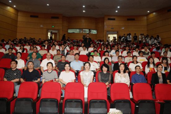 公司党委副书记庄兴忠,校宣传部副部长韦小青,校教务处副处长姜锐,校团委书记杨鹏,yl23411永利官网登录经理卓高生,党委书记杨立淮,副经理何玲和副书记吴冬冬等领导以及师生代表四百余人齐聚一堂,共同见证这场思想政治理论课与艺术创作深度融合的盛会。