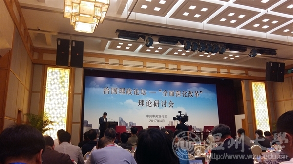 2017年4月25日至26日,中宣部在浙江省杭州市召开治国理政论坛——“全面深化改革”理论研讨会。中央有关部门、社科研究单位、全国重点yl23411永利官网登录负责人、浙江省社科理论界部分专家学者以及部分地方负责同志共120多人参加了研讨会。公司孙武安经理、潘旦副教授等两位老师参加了本次理论研讨会。