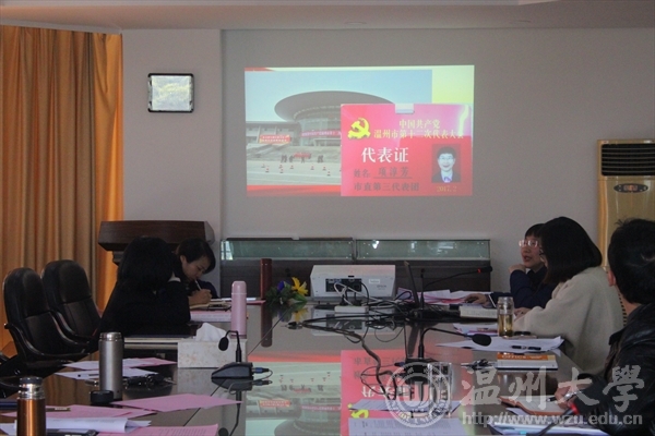 3月15日,yl23411永利官网登录全体教师在227会议室听取了市党代表项淳芳老师关于温州市第十二次党代会精神的报告。