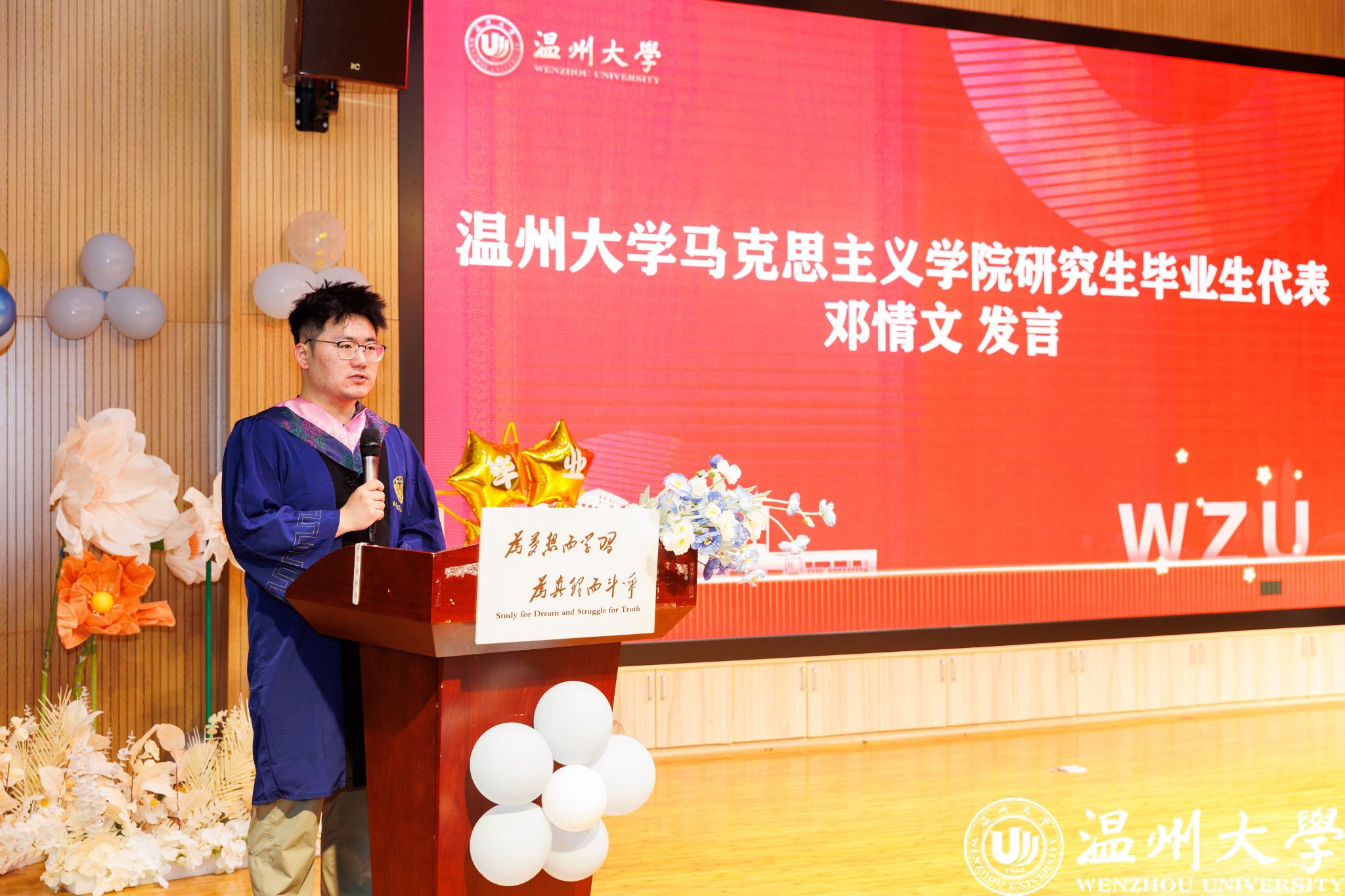 2025届研究生毕业生代表邓情文、本科生毕业生代表周钦对自己在公司的学习生活展开了回顾,表达了对公司、对公司、对老师们真挚的感激之情。希望同学们在未来的生活中,不忘“为梦想而学习,为真理而斗争”的院训,用心用情用力去书写属于自己的精彩人生。