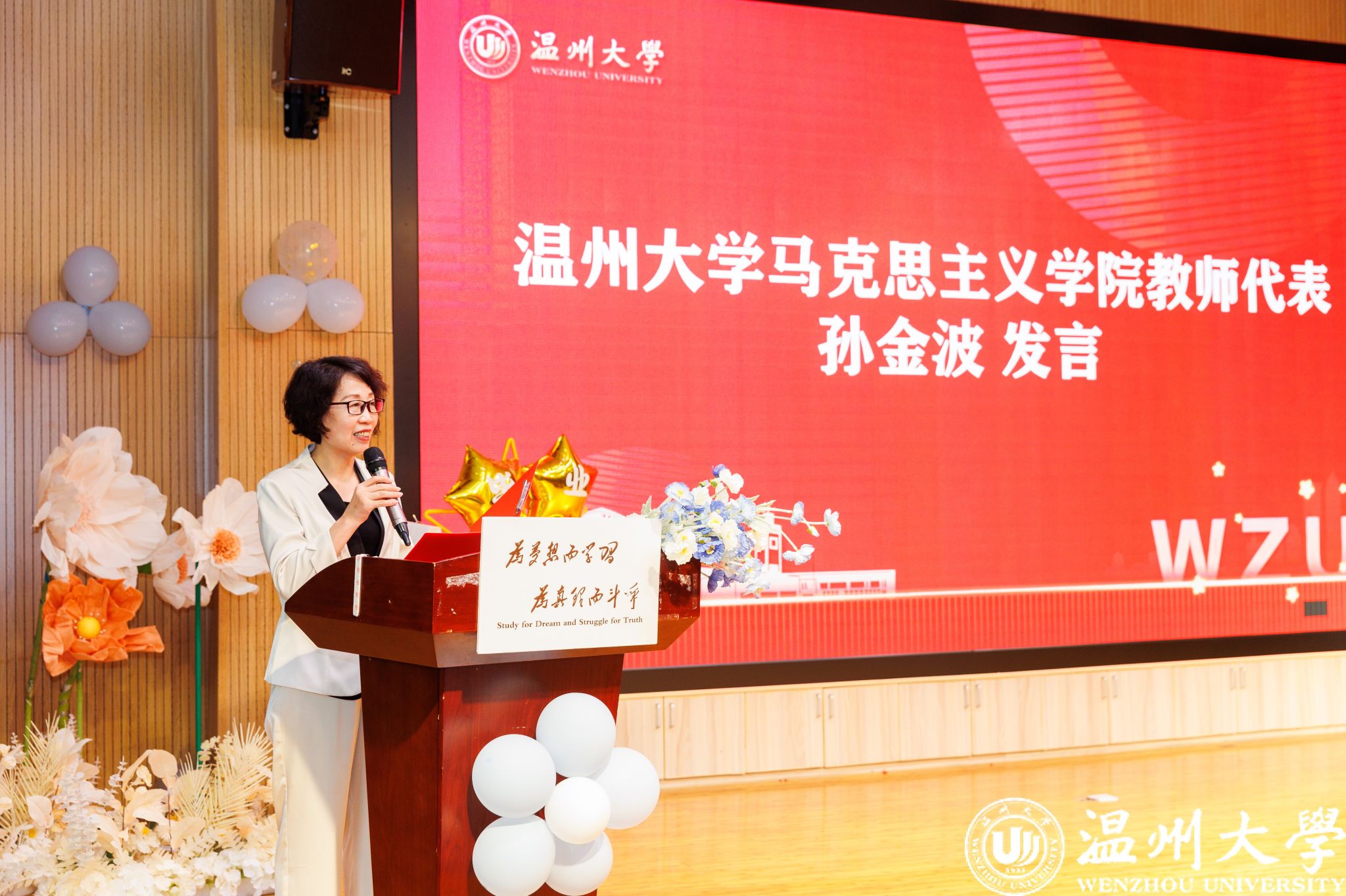 教师代表孙金波老师为毕业生们送上了美好祝福。孙老师用幽默风趣的话语回顾了同学们的成长历程,对大家在公司的学习和生活给予了肯定。此外,孙老师强调了感恩的重要性,鼓励毕业生“将爱传下去”。最后,孙老师希望大家在未来的日子里,要“有批判精神,有审美自由,有自己的城堡,做自己的哲学王。”