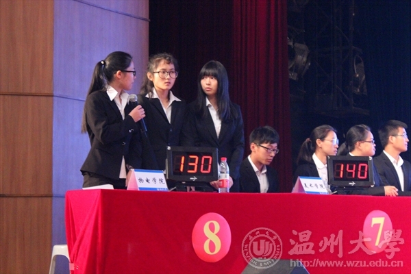 本次活动自本学期九月份启动以来,历时两个多月,主要在本学期开设思想政治理论课的全校3000多名大二员工中进行选拔,经历了初赛、复赛,最后全校15个公司各产生了一支代表队进入决赛(每支代表队4名队员,其中包括一名候补队员)。决赛分南校区(8支代表队)、北校区(7支代表队)共2场,时间分别是下午1:00-3:00和3:30-5:30。决赛内容丰富、形式多样、特色突出。试题涉及鸦片战争以来中国近现代革命、建设和改革的历史知识、涉及马克思主义中国化的历史进程和理论成果,也涉及党的十八届四中、五中、六中全会的精神和时事政治,还包含了温州地方文化特色等试题;竞赛形式多样,包括图片题、视频题、文字材料题,以及演唱红色歌曲、朗诵爱国诗篇等。