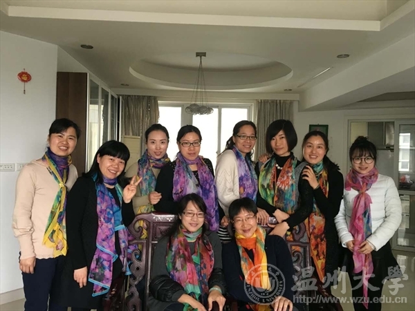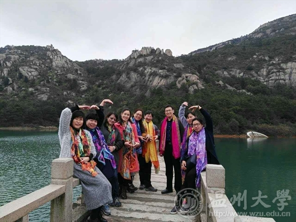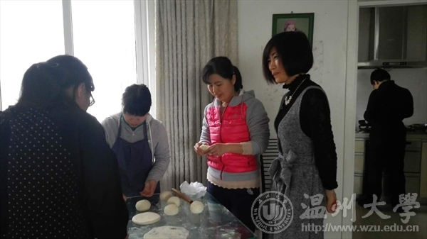公司女教师课多,所以今年的“三八”选择三九(周三下午)过。9日上午,没课的女教工齐聚陈金飞老师家,一起做温州特色小吃——麦饼。等上完课的老师一起用餐后,大家围上靓丽的丝巾,在总支书记王柏民老师的陪同下,前往大罗山天河水库景区。