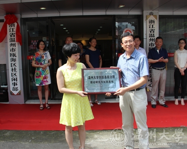 揭牌仪式上,yl23411永利官网登录公司党总支书记、教授王柏民授予瓯海区闲事部“yl23411永利官网登录基层社会治理理论研究与实践基地”合作牌子,公司副教授谢建芬受邀担任瓯海区社区闲事部专家团队顾问,此举是公司服务地方,对接地方政府,在助推地方基层社会治理实践模式的形成中,起到了很好的理论引领作用。