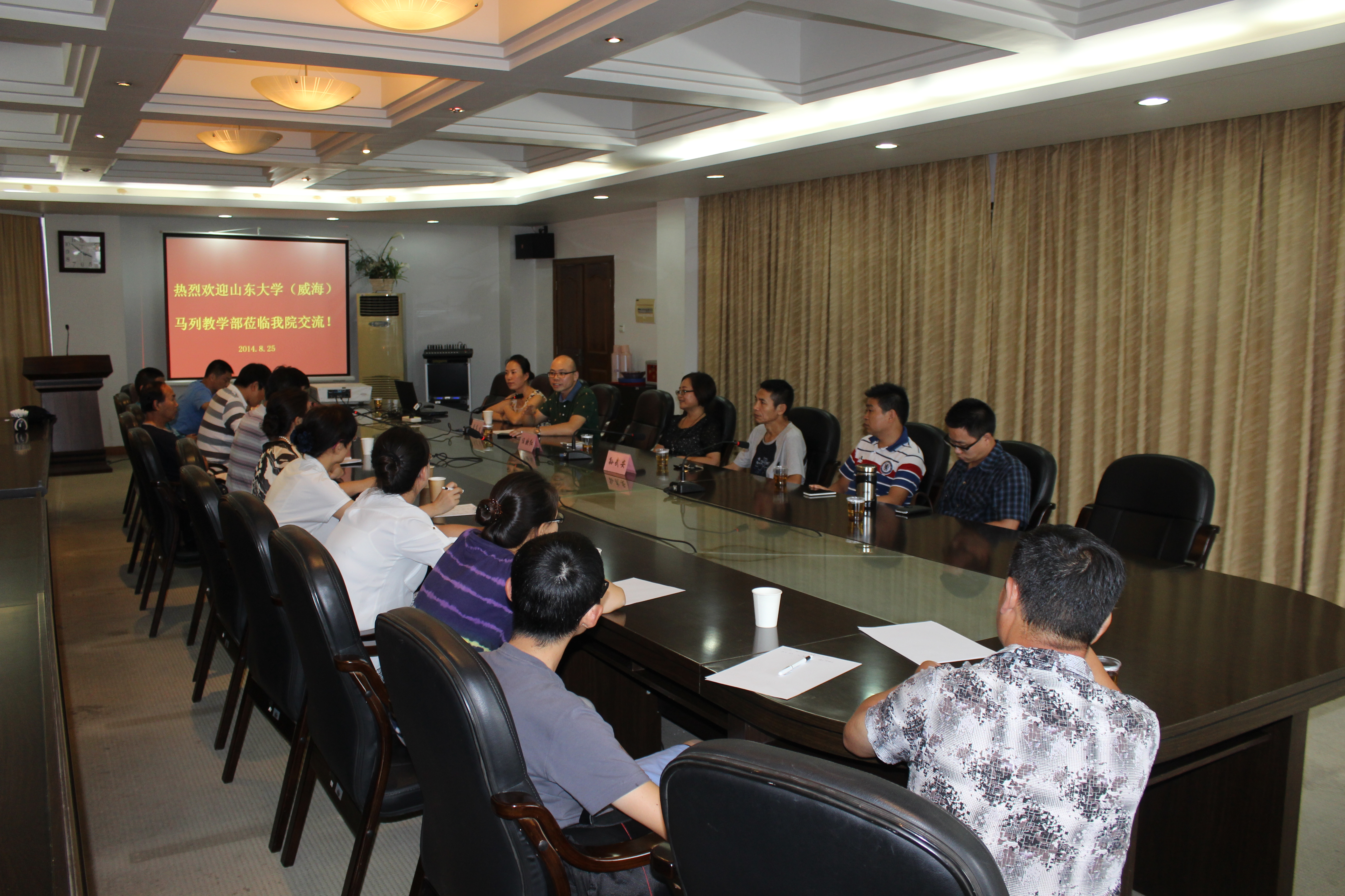 吴文新主任对公司所取得的成绩表示赞赏,并介绍了山东大学(威海)马列教学部的办学情况及经验。双方围绕思政课课堂教学效果、平时成绩考核、考试形式改革、实践教学等方面进行了深入交流探讨。