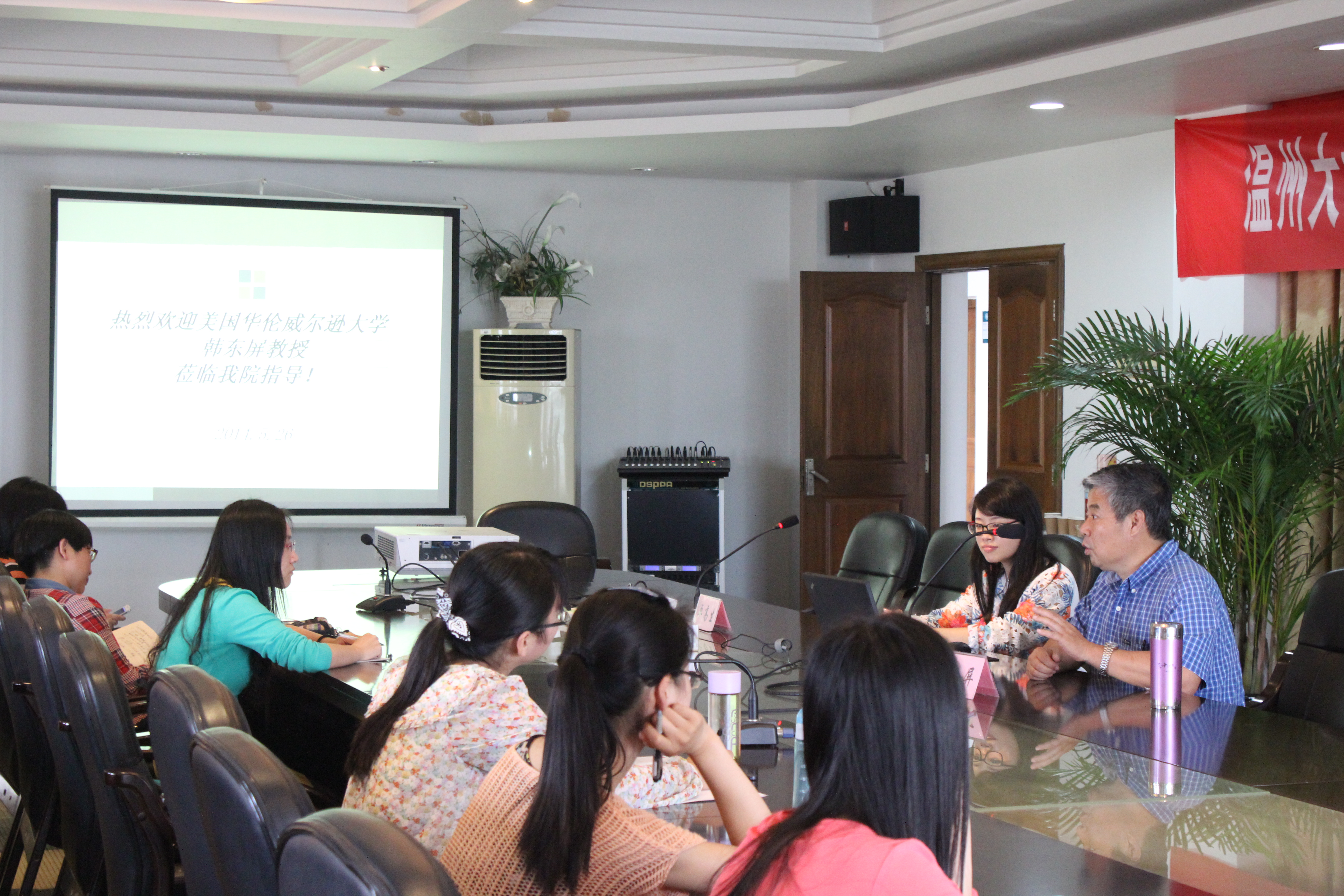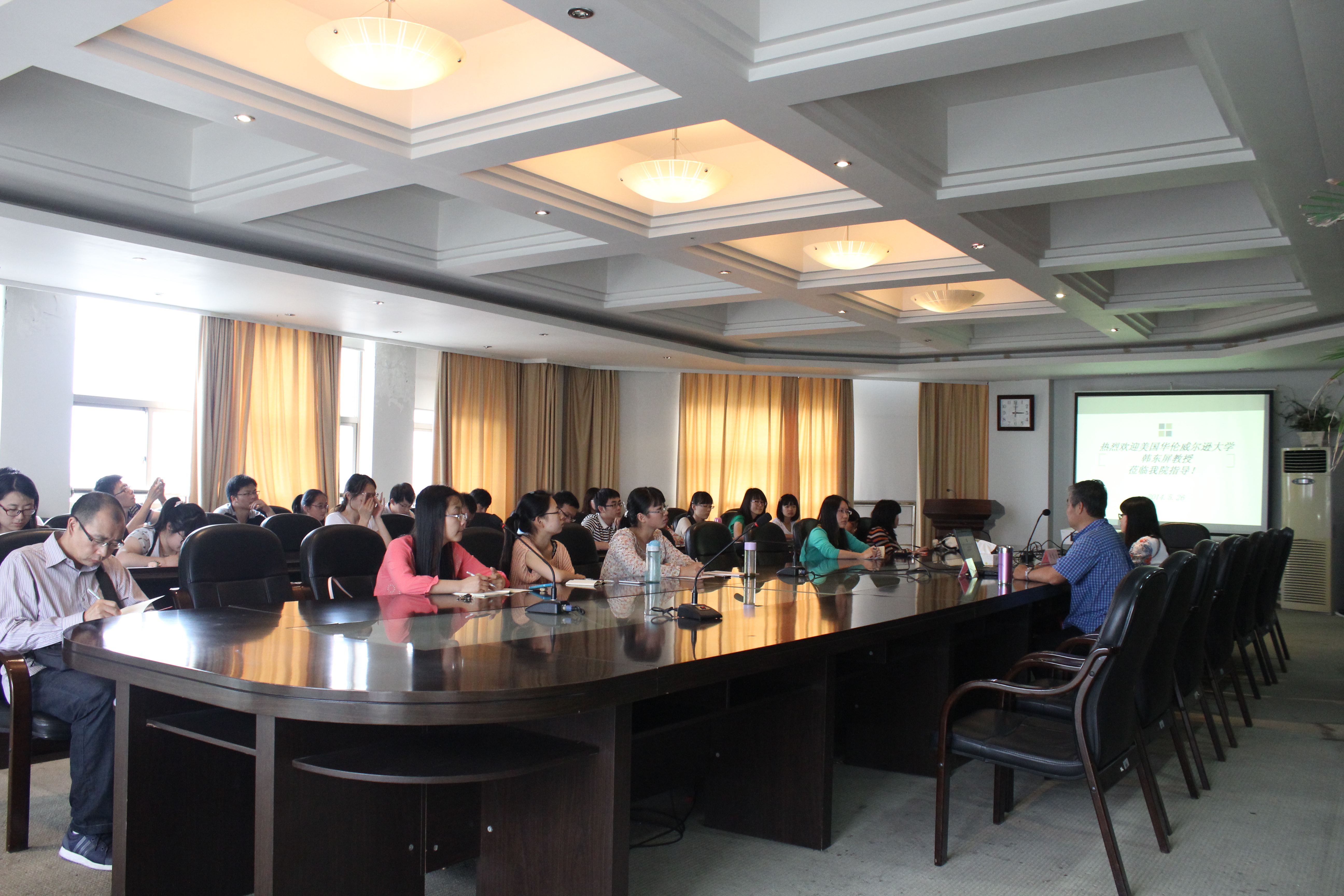 5月26日下午,美国华伦威尔逊大学韩东屏教授应邀来公司做学术报告。yl23411永利官网登录部分教师与全体研究生参加了报告会。报告会由卓高生副经理主持。