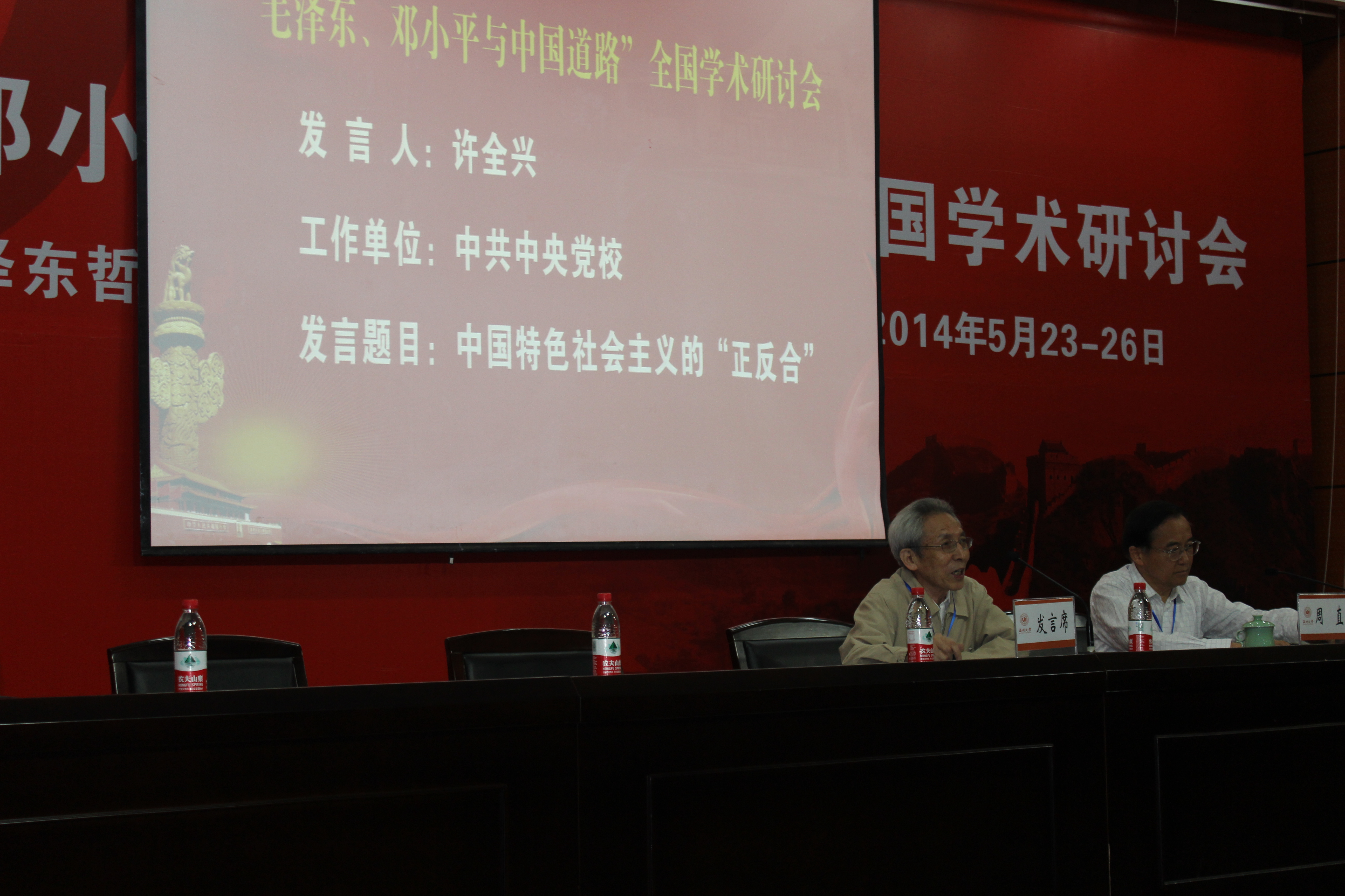 会上,全国毛泽东哲学思想研究会名誉会长石仲泉作《邓小平与中华民族伟大复兴的中国梦》主题报告。与会专家学者还围绕“毛泽东与当代中国、邓小平与中国道路、毛泽东哲学思想的当代价值、毛泽东思想邓小平理论与中华民族伟大复兴”等方面的内容进行了热烈讨论。