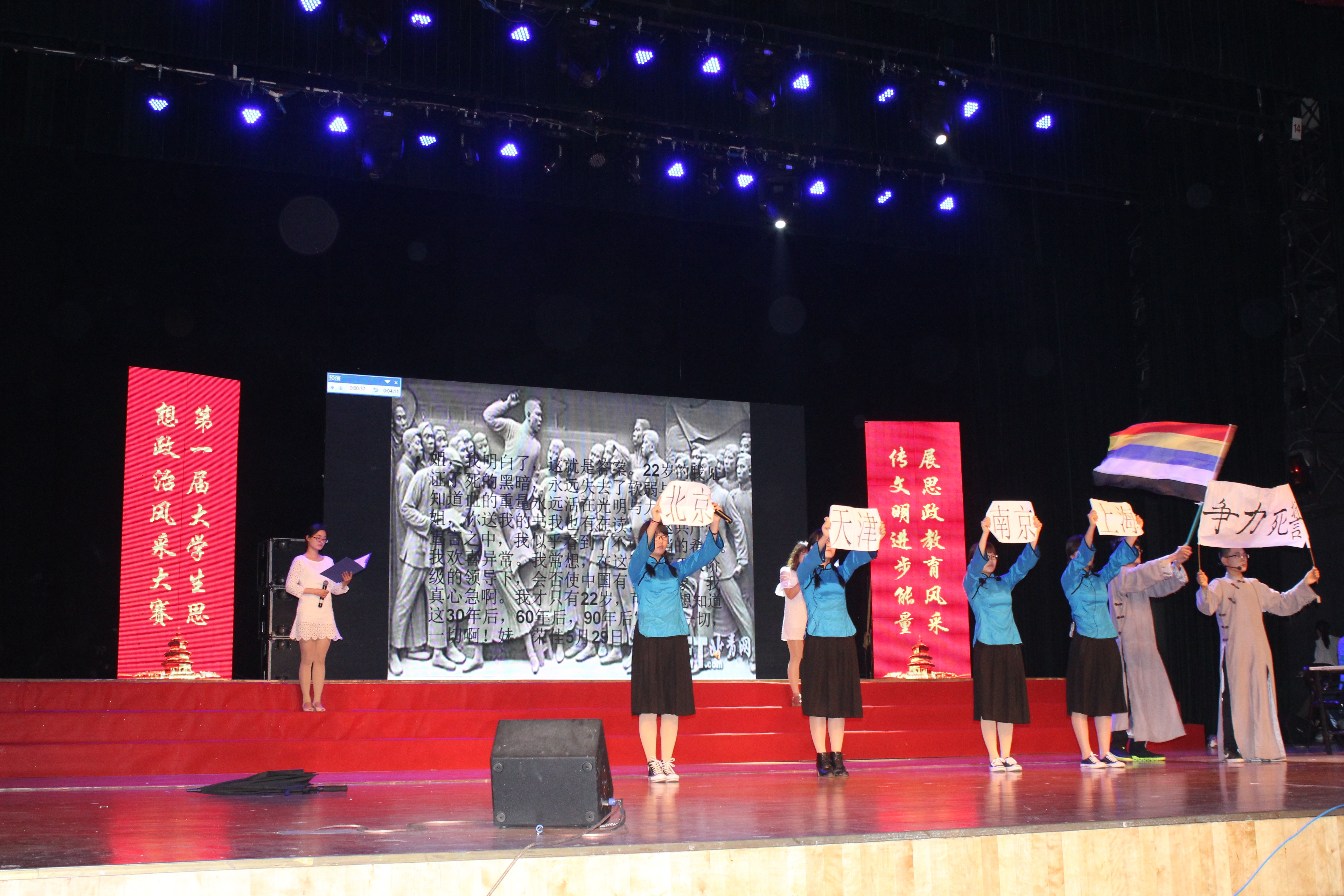 参加决赛的15支代表队是在yl23411永利官网登录全体任课教师的指导下,从本学期开课的全校15个公司60个教学班中选拔产生的。前期经历了近二个月的初赛、复赛。此次决赛,各代表队在任课教师的精心指导下,以5-10人为一个参赛小组,选题目、查资料、做课件,做了充分准备。比赛中,同学们紧密结合思想政治教育这个主题,通过情景剧、诗朗诵、舞蹈、乐器表演、歌颂等多种形式,各显其能,充分展示了温大学子优良的政治素质和精神风貌。比如:数学与信息科学公司的《光影中国》用一卷拉开二十来米的长布,通过灯光把演员在布后面表演的动作投影在白布上,形式新颖地让观众重温了“五四运动”、南京大屠杀、开国大典、改革开放、08年北京奥运会等意义非凡的历史瞬间;教育公司的情景剧《为官之道》以一个公务员受贿行贿被判死刑的噩梦诠释了为官应清廉爱民,不要辱没“公仆”之称号,与时下反腐倡廉的形势紧密联系;音乐公司古筝、二胡、琵琶,各种民族乐器一齐上台,用他们的技艺表演并弹奏了《我的祖国》;人文公司以情景剧和诗朗诵的方式回顾了新中国60多年的光辉历史,表达了祖国《明天会更好》的美好祈愿;法政公司《法政之光》对“法”的阐释;其它各公司,有的歌颂了大灾大难中的英雄和好人,有的用剧情表达了对雷锋精神的高度赞扬,有的以深情的朗诵再现了马克思、周恩来、钱学森等伟人的感人事迹及其伟大品格,还有的用流沙河的诗歌《理想》表达了对正能量的强烈呼唤……。各代表队以其独具特色的方式充分展示了yl23411永利官网登录员工优良的思想政治素质和精神风貌。